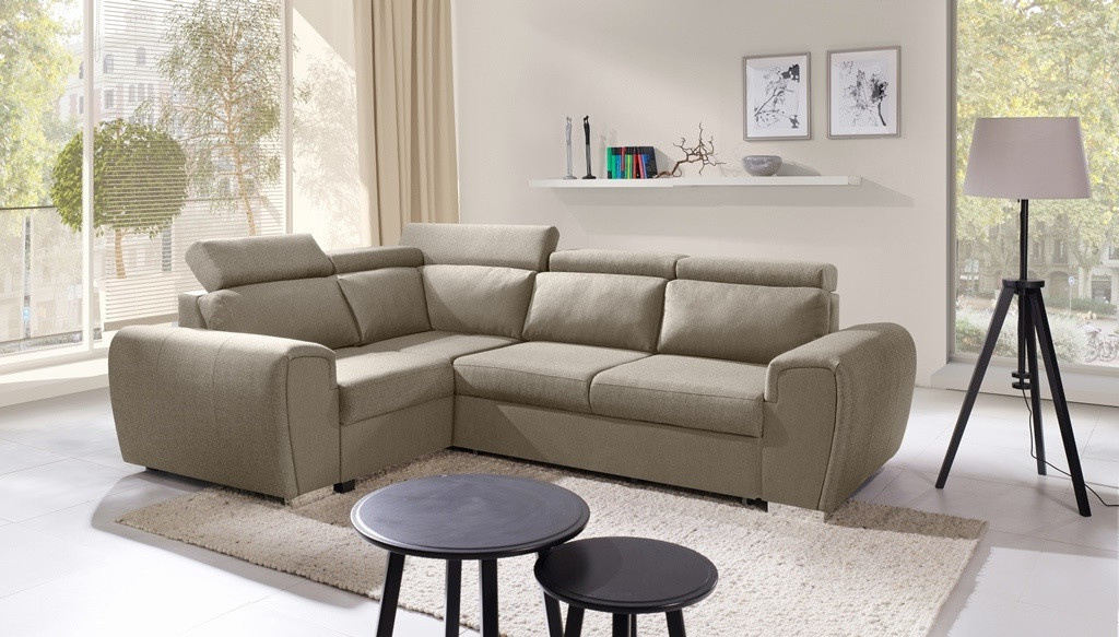 Moderní rohová sedací souprava WIZARO má elegantní design, který dokonale zapadne do prostoru obývacího pokoje nebo obývacího pokoje zařízeného v industriální a modernistické estetice. Rohová sedací souprava ve tvaru písmene L s bočnicemi je k dispozici ve dvou variantách: pravé nebo levé. Rohová sedací souprava s mírně zaoblenými hranami je vybavena pohyblivými opěrkami hlavy, díky nimž si každý může nastavit opěradlo podle svých individuálních potřeb a vlastního pohodlí. Rohová souprava pro více osob se dodává s dekorativními polštáři. Kromě polohovatelného opěradla má rohová pohovka úložný prostor na lůžkoviny a také funkci spaní, takže ji lze rozložit a zajistit tak pozvaným hostům pohodlí a bezpečný noční odpočinek. Rohová pohovka s dřevěným rámem je vyplněna čalounickou pěnou T-30 a vlnitou pružinou na sedací části. Výše uvedené materiály zajistí trvanlivost, stabilitu a pevnost konstrukce. Stylová rohová pohovka s chromovanými nožkami bude nejen místem pohodlného odpočinku, ale také estetickým kusem nábytku podtrhujícím vytvořené uspořádání.