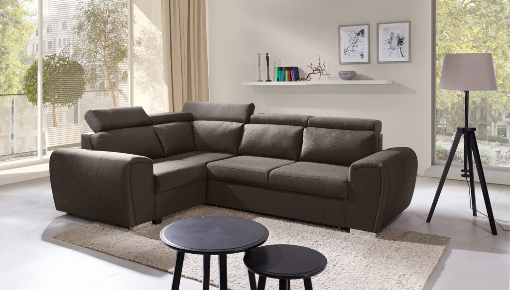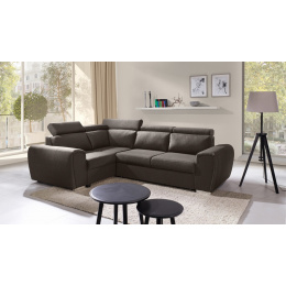 Moderní rohová sedací souprava WIZARO má elegantní design, který dokonale zapadne do prostoru obývacího pokoje nebo obývacího pokoje zařízeného v industriální a modernistické estetice. Rohová sedací souprava ve tvaru písmene L s bočnicemi je k dispozici ve dvou variantách: pravé nebo levé. Rohová sedací souprava s mírně zaoblenými hranami je vybavena pohyblivými opěrkami hlavy, díky nimž si každý může nastavit opěradlo podle svých individuálních potřeb a vlastního pohodlí. Rohová souprava pro více osob se dodává s dekorativními polštáři. Kromě polohovatelného opěradla má rohová pohovka úložný prostor na lůžkoviny a také funkci spaní, takže ji lze rozložit a zajistit tak pozvaným hostům pohodlí a bezpečný noční odpočinek. Rohová pohovka s dřevěným rámem je vyplněna čalounickou pěnou T-30 a vlnitou pružinou na sedací části. Výše uvedené materiály zajistí trvanlivost, stabilitu a pevnost konstrukce. Stylová rohová pohovka s chromovanými nožkami bude nejen místem pohodlného odpočinku, ale také estetickým kusem nábytku podtrhujícím vytvořené uspořádání.