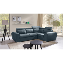Moderní rohová sedací souprava WIZARO má elegantní design, který dokonale zapadne do prostoru obývacího pokoje nebo obývacího pokoje zařízeného v industriální a modernistické estetice. Rohová sedací souprava ve tvaru písmene L s bočnicemi je k dispozici ve dvou variantách: pravé nebo levé. Rohová sedací souprava s mírně zaoblenými hranami je vybavena pohyblivými opěrkami hlavy, díky nimž si každý může nastavit opěradlo podle svých individuálních potřeb a vlastního pohodlí. Rohová souprava pro více osob se dodává s dekorativními polštáři. Kromě polohovatelného opěradla má rohová pohovka úložný prostor na lůžkoviny a také funkci spaní, takže ji lze rozložit a zajistit tak pozvaným hostům pohodlí a bezpečný noční odpočinek. Rohová pohovka s dřevěným rámem je vyplněna čalounickou pěnou T-30 a vlnitou pružinou na sedací části. Výše uvedené materiály zajistí trvanlivost, stabilitu a pevnost konstrukce. Stylová rohová pohovka s chromovanými nožkami bude nejen místem pohodlného odpočinku, ale také estetickým kusem nábytku podtrhujícím vytvořené uspořádání.