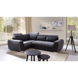 Moderní rohová sedací souprava WIZARO má elegantní design, který dokonale zapadne do prostoru obývacího pokoje nebo obývacího pokoje zařízeného v industriální a modernistické estetice. Rohová sedací souprava ve tvaru písmene L s bočnicemi je k dispozici ve dvou variantách: pravé nebo levé. Rohová sedací souprava s mírně zaoblenými hranami je vybavena pohyblivými opěrkami hlavy, díky nimž si každý může nastavit opěradlo podle svých individuálních potřeb a vlastního pohodlí. Rohová souprava pro více osob se dodává s dekorativními polštáři. Kromě polohovatelného opěradla má rohová pohovka úložný prostor na lůžkoviny a také funkci spaní, takže ji lze rozložit a zajistit tak pozvaným hostům pohodlí a bezpečný noční odpočinek. Rohová pohovka s dřevěným rámem je vyplněna čalounickou pěnou T-30 a vlnitou pružinou na sedací části. Výše uvedené materiály zajistí trvanlivost, stabilitu a pevnost konstrukce. Stylová rohová pohovka s chromovanými nožkami bude nejen místem pohodlného odpočinku, ale také estetickým kusem nábytku podtrhujícím vytvořené uspořádání.