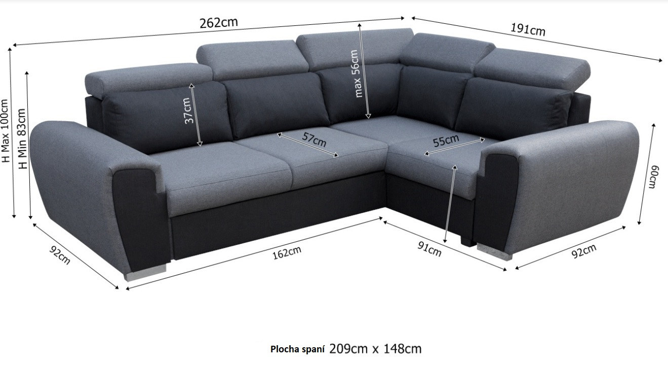 - rohová pohovka je k dispozici v pravém nebo levém provedení