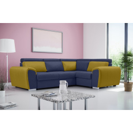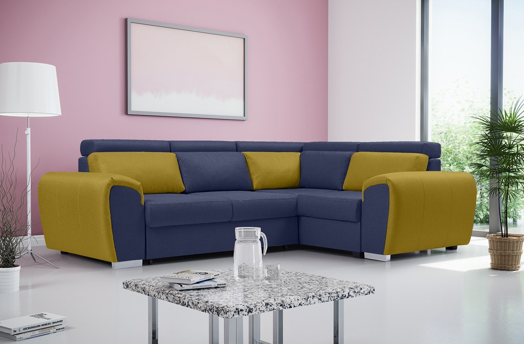 Dvoubarevná rohová sedací souprava WYZ je vysoce estetický design s jemně zaoblenými tvary, který se bude skvěle hodit do prostoru obývacího pokoje nebo moderně zařízeného obývacího pokoje. Rozkládací rohová sedací souprava s bočnicemi stojí na chromových nožkách, které nejenže dodávají nábytku stylový charakter, ale také zajišťují odpovídající stabilitu a odolnost. Rohová sedací souprava WYZ ve tvaru písmene L je k dispozici v pravém nebo levém provedení. Rohová sedací souprava s bočnicemi je vybavena nádobou na lůžkoviny, funkcí spaní a automatickým rozkládáním typu delfín. Rohová pohovka je čalouněná látkou a je k dispozici v široké škále barev, aby vyhovovala individuálním preferencím každého z vás. Představený model WYZ je vybaven nastavitelnými opěrkami hlavy a dekorativními polštáři, které zajistí pohodlí i při několikahodinovém sezení s knihou v ruce nebo při sledování televize. Dřevěný rám je vyplněn vlnitými pružinami a čalounickou pěnou, které se starají o zachování zvýšené pružnosti, takže na nábytku nevznikají nevzhledné deformace. Moderní rohová sedací souprava se vyrábí na objednávku, takže je možné zvolit barvu vložek a celkové barevné provedení.
