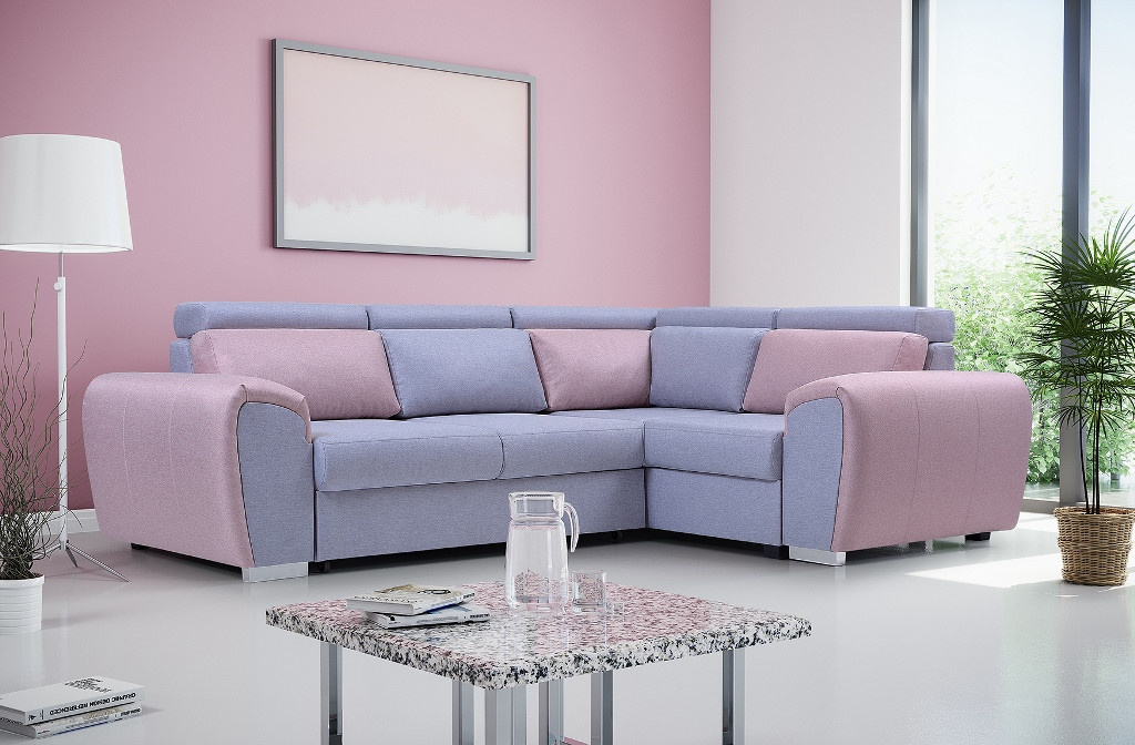 Dvoubarevná rohová sedací souprava WYZ je vysoce estetický design s jemně zaoblenými tvary, který se bude skvěle hodit do prostoru obývacího pokoje nebo moderně zařízeného obývacího pokoje. Rozkládací rohová sedací souprava s bočnicemi stojí na chromových nožkách, které nejenže dodávají nábytku stylový charakter, ale také zajišťují odpovídající stabilitu a odolnost. Rohová sedací souprava WYZ ve tvaru písmene L je k dispozici v pravém nebo levém provedení. Rohová sedací souprava s bočnicemi je vybavena nádobou na lůžkoviny, funkcí spaní a automatickým rozkládáním typu delfín. Rohová pohovka je čalouněná látkou a je k dispozici v široké škále barev, aby vyhovovala individuálním preferencím každého z vás. Představený model WYZ je vybaven nastavitelnými opěrkami hlavy a dekorativními polštáři, které zajistí pohodlí i při několikahodinovém sezení s knihou v ruce nebo při sledování televize. Dřevěný rám je vyplněn vlnitými pružinami a čalounickou pěnou, které se starají o zachování zvýšené pružnosti, takže na nábytku nevznikají nevzhledné deformace. Moderní rohová sedací souprava se vyrábí na objednávku, takže je možné zvolit barvu vložek a celkové barevné provedení.