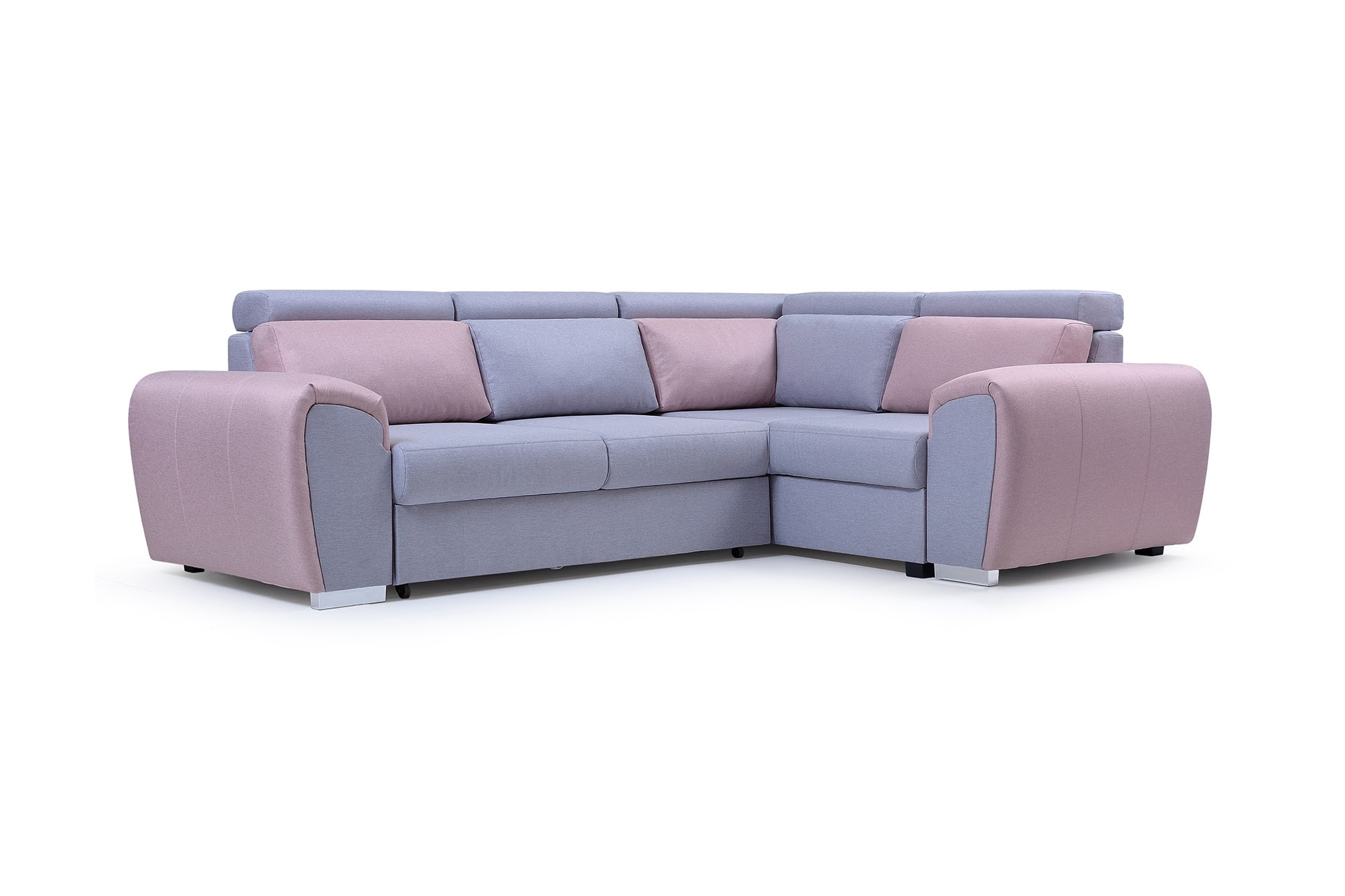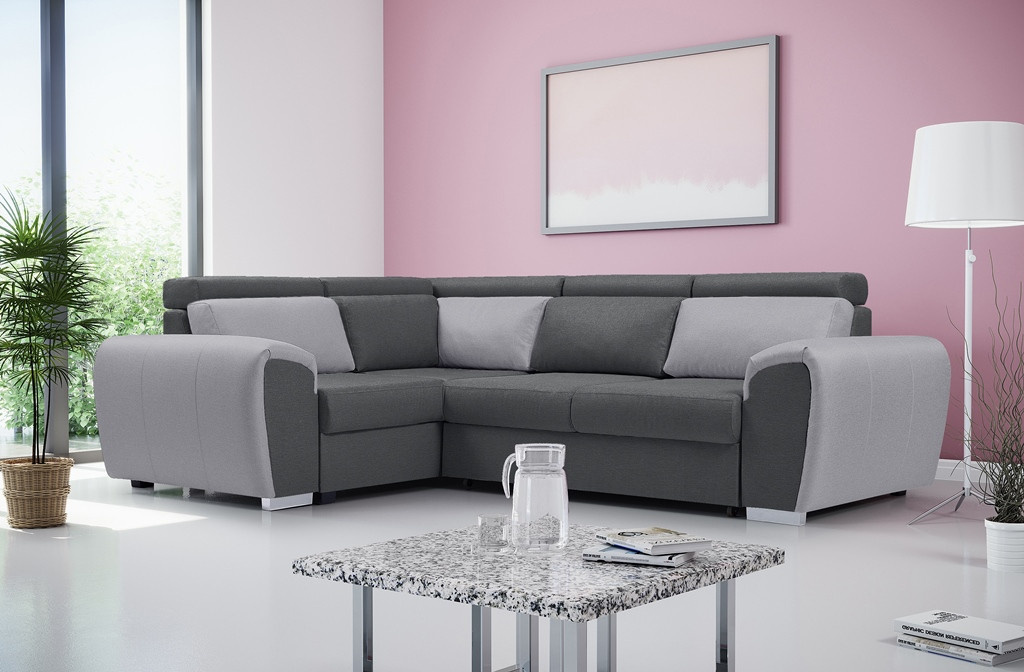 Dvoubarevná rohová sedací souprava WYZ je vysoce estetický design s jemně zaoblenými tvary, který se bude skvěle hodit do prostoru obývacího pokoje nebo moderně zařízeného obývacího pokoje. Rozkládací rohová sedací souprava s bočnicemi stojí na chromových nožkách, které nejenže dodávají nábytku stylový charakter, ale také zajišťují odpovídající stabilitu a odolnost. Rohová sedací souprava WYZ ve tvaru písmene L je k dispozici v pravém nebo levém provedení. Rohová sedací souprava s bočnicemi je vybavena nádobou na lůžkoviny, funkcí spaní a automatickým rozkládáním typu delfín. Rohová pohovka je čalouněná látkou a je k dispozici v široké škále barev, aby vyhovovala individuálním preferencím každého z vás. Představený model WYZ je vybaven nastavitelnými opěrkami hlavy a dekorativními polštáři, které zajistí pohodlí i při několikahodinovém sezení s knihou v ruce nebo při sledování televize. Dřevěný rám je vyplněn vlnitými pružinami a čalounickou pěnou, které se starají o zachování zvýšené pružnosti, takže na nábytku nevznikají nevzhledné deformace. Moderní rohová sedací souprava se vyrábí na objednávku, takže je možné zvolit barvu vložek a celkové barevné provedení.