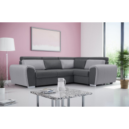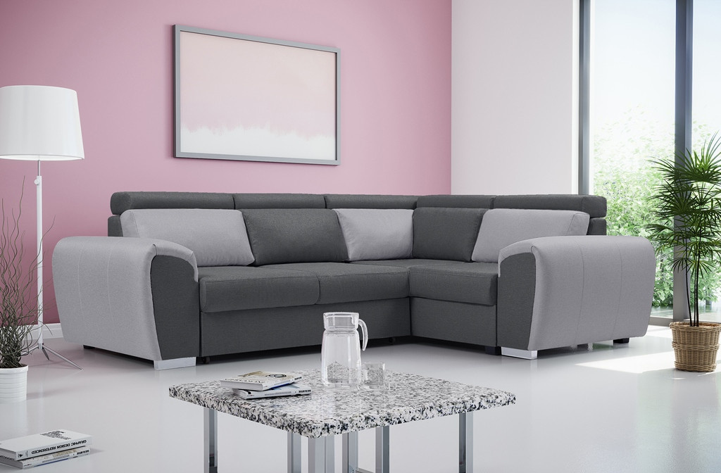 Dvoubarevná rohová sedací souprava WYZ je vysoce estetický design s jemně zaoblenými tvary, který se bude skvěle hodit do prostoru obývacího pokoje nebo moderně zařízeného obývacího pokoje. Rozkládací rohová sedací souprava s bočnicemi stojí na chromových nožkách, které nejenže dodávají nábytku stylový charakter, ale také zajišťují odpovídající stabilitu a odolnost. Rohová sedací souprava WYZ ve tvaru písmene L je k dispozici v pravém nebo levém provedení. Rohová sedací souprava s bočnicemi je vybavena nádobou na lůžkoviny, funkcí spaní a automatickým rozkládáním typu delfín. Rohová pohovka je čalouněná látkou a je k dispozici v široké škále barev, aby vyhovovala individuálním preferencím každého z vás. Představený model WYZ je vybaven nastavitelnými opěrkami hlavy a dekorativními polštáři, které zajistí pohodlí i při několikahodinovém sezení s knihou v ruce nebo při sledování televize. Dřevěný rám je vyplněn vlnitými pružinami a čalounickou pěnou, které se starají o zachování zvýšené pružnosti, takže na nábytku nevznikají nevzhledné deformace. Moderní rohová sedací souprava se vyrábí na objednávku, takže je možné zvolit barvu vložek a celkové barevné provedení.