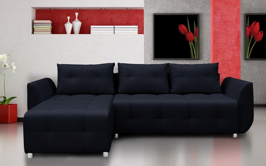 Rohová universální sedací souprava SARA, Černá Ekokůže 11