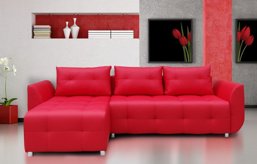 Rohová universální sedací souprava SARA, Červená Ekokůže 10