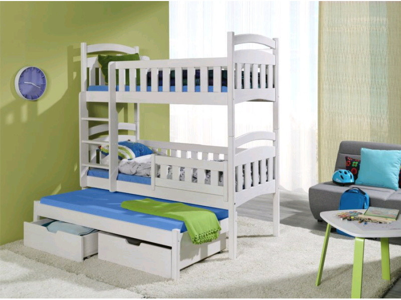 Dětská patrová postel DOMINIK II pro 3 děti je vyrobena z kvalitního masivního borovicového dřeva. Součástí postele jsou i rošty. Cena postele je uvedena v přírodním provedení. Za barevné provedení je příplatek 330.- kč. Postel lze vyrobit na zakázku i ve Vámi požadovaném rozměru za příplatek, který Vám sdělíme dle Vašeho požadavku.