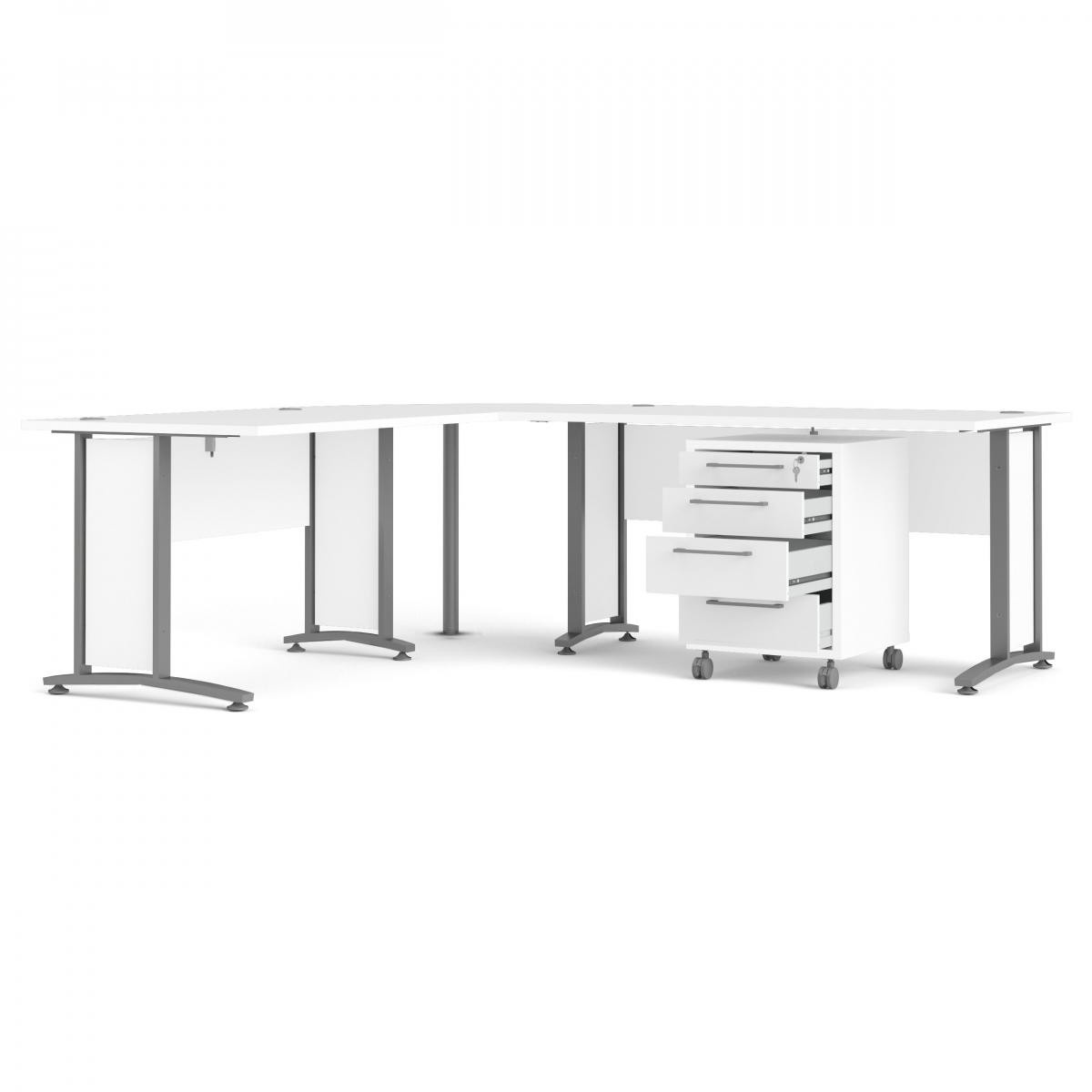 Rohový psací stůl OFFICE 80400/304, Bílá/Stříbrná