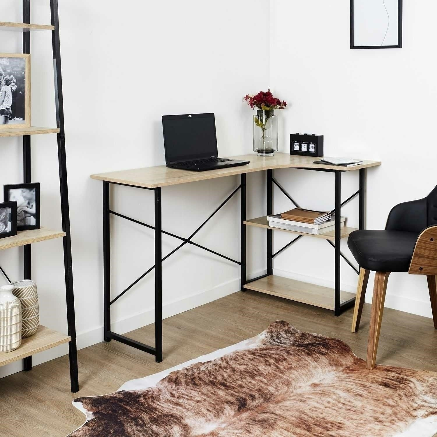 Kancelářský stůl Stand je nábytek v loftovém stylu. Psací stůl se dokonale hodí pro osoby, které si cení organizovaného pracovního prostoru. Stůl je vybaven dvěma policemi, ve kterých můžeme uchovávat šanony nebo bloky samolepicích papírků. Deska stolu ve tvaru písmene L pojme nejen monitor počítače nebo notebook. Psací stůl Stand se dokonale hodí jak do kanceláře, pracovny, tak i do studentského pokoje. Stůl se vyznačuje jednoduchou konstrukcí. Deska a police z laminované MDF desky byly umístěny na kovové, stylové základně, která celku dodává půvab. Rozměry balení: 5x75x123 cm Hmotnost: 15 kg