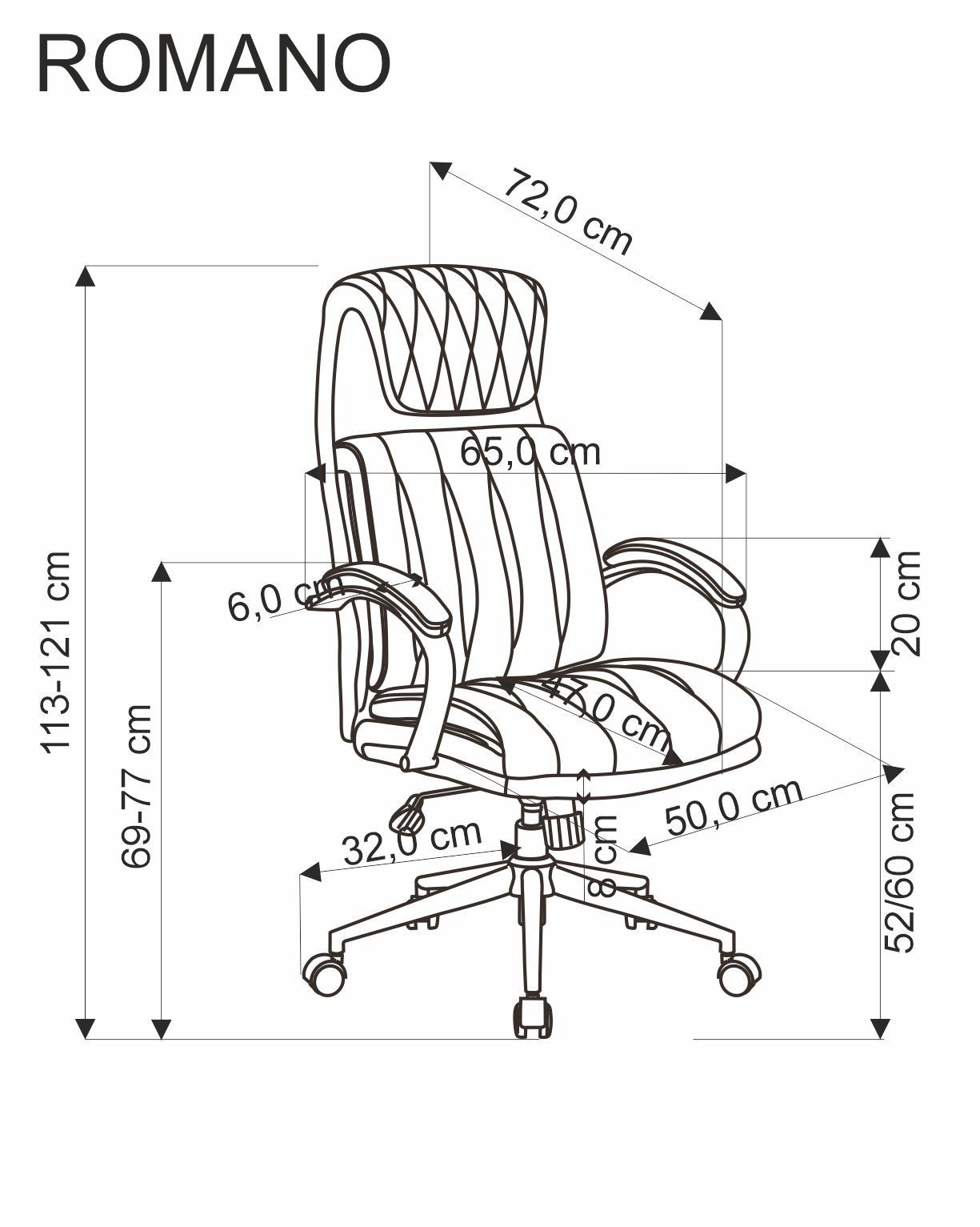 | Výška sedu - nastavitelná v cm | 52cm-60cm |