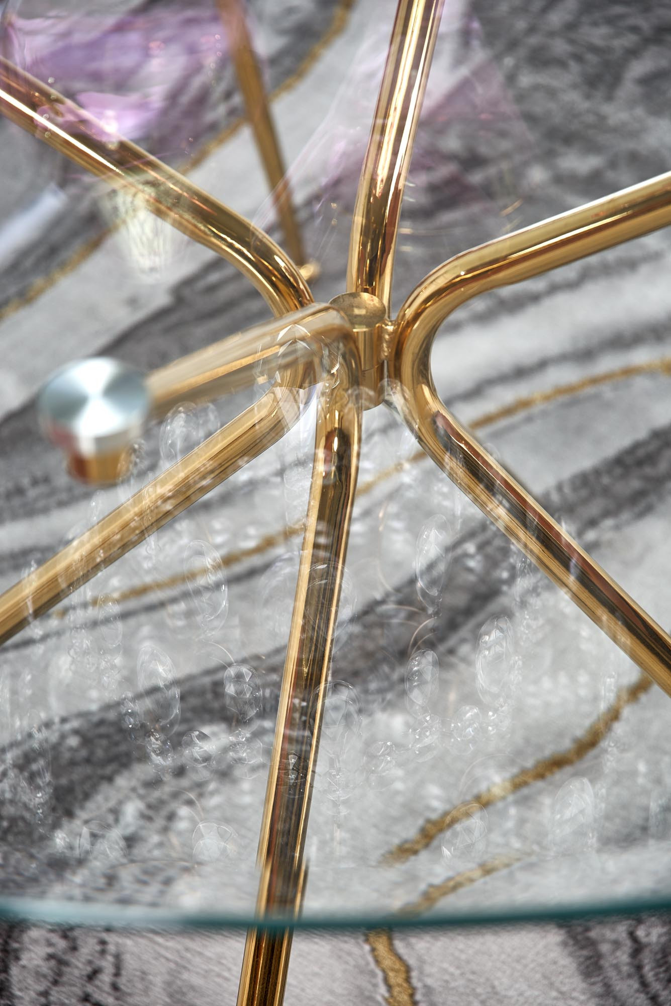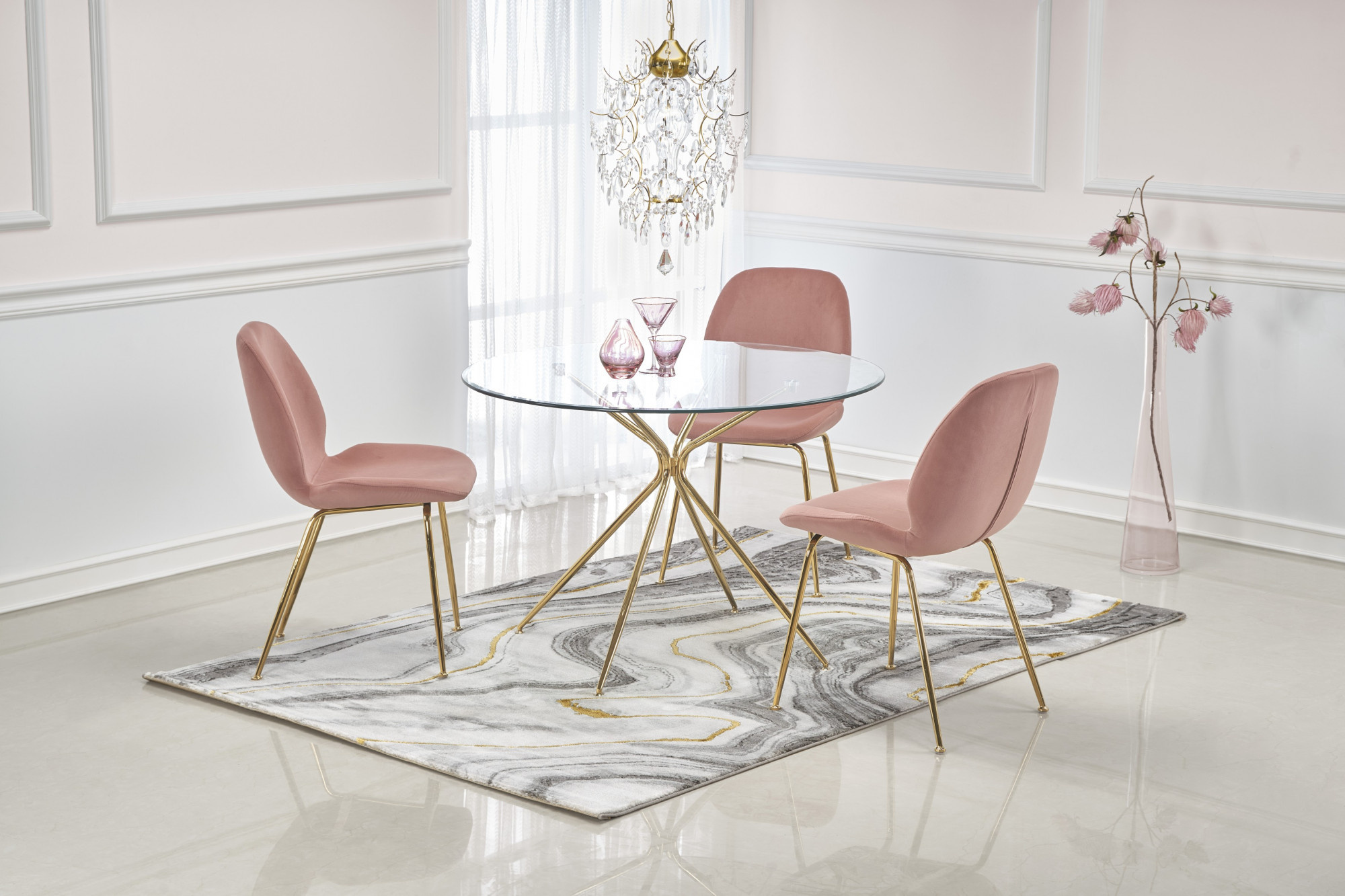 Jídelní stůl RONDO, skleněný/zlaté nohy