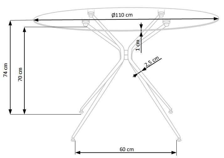 rozměry: o110/74 cm, materiál: sklo / chromovaná ocel, barva: deska stolu - transparentní, nohy - zlaté