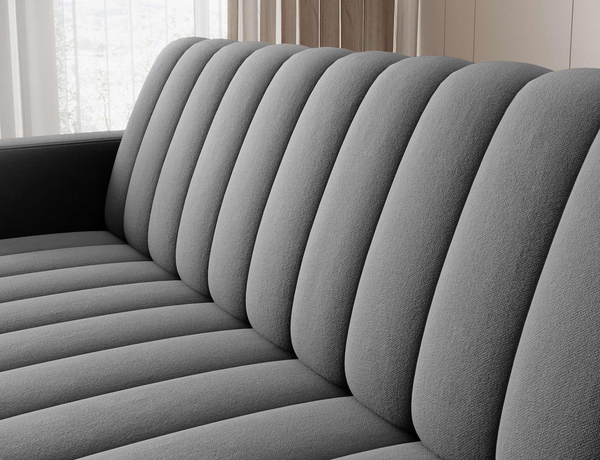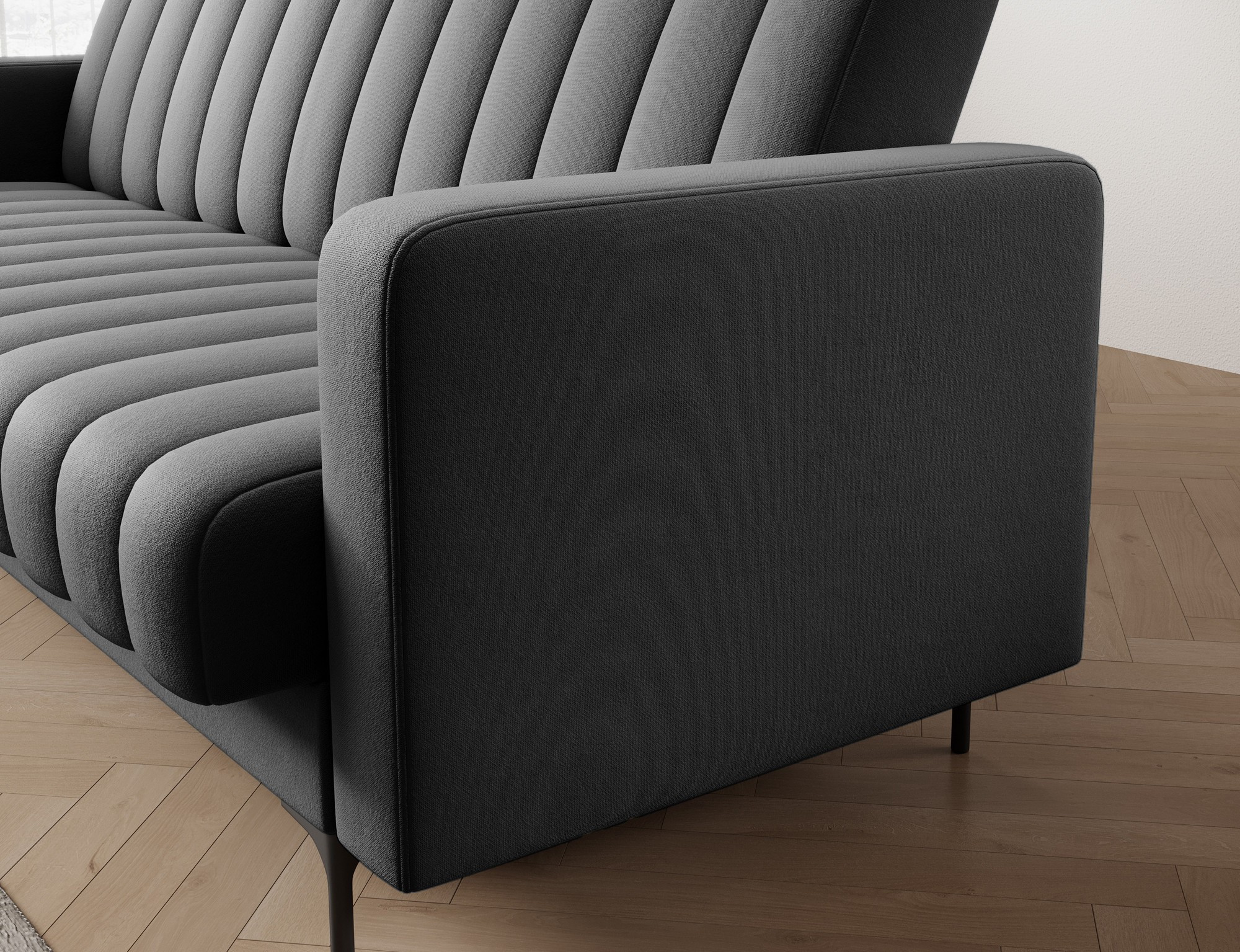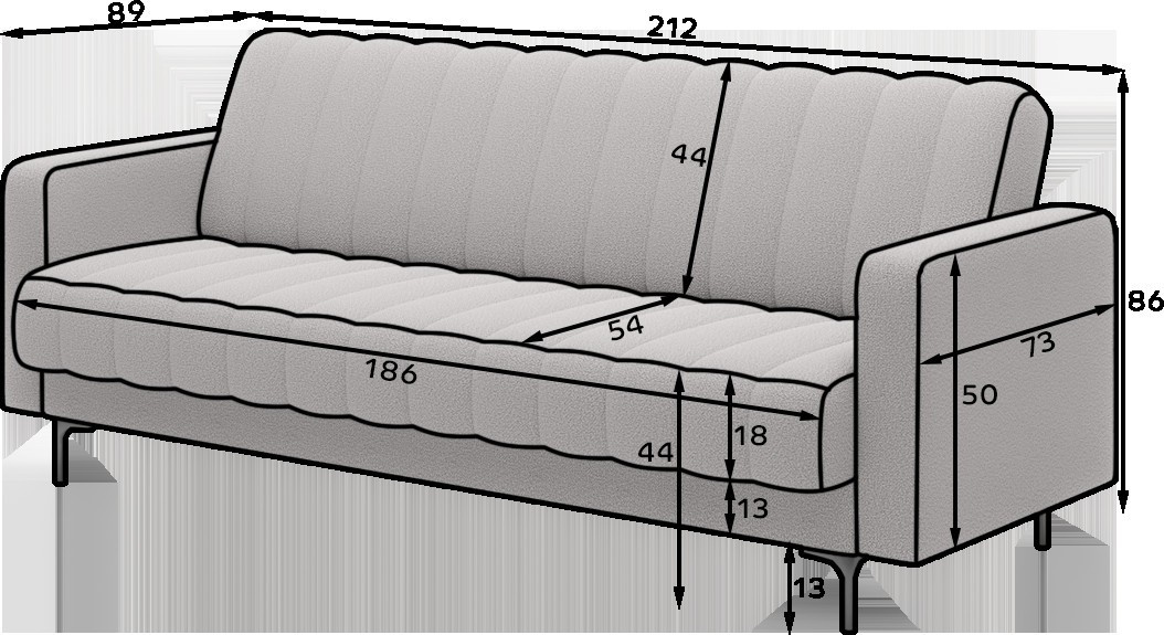 Moderní rozkládací pohovka Roneyy, měřící 212x89x86 cm, je stylový a funkční kus nábytku do obývacího pokoje, který kombinuje každodenní pohodlí s praktickými řešeními, jako je funkce spaní a úložný prostor na lůžkoviny. Komfort zajišťuje sedák a opěradlo vyplněné vlnovými pružinami typu B a pěnou T2540, zatímco černé plastové nohy zdůrazňují stabilitu a elegantní vzhled. Mechanismus Click-Clack usnadňuje rozložení pohovky, což znamená, že Roneyy dokonale zapadá do moderních interiérů a splňuje očekávání i těch nejnáročnějších uživatelů.