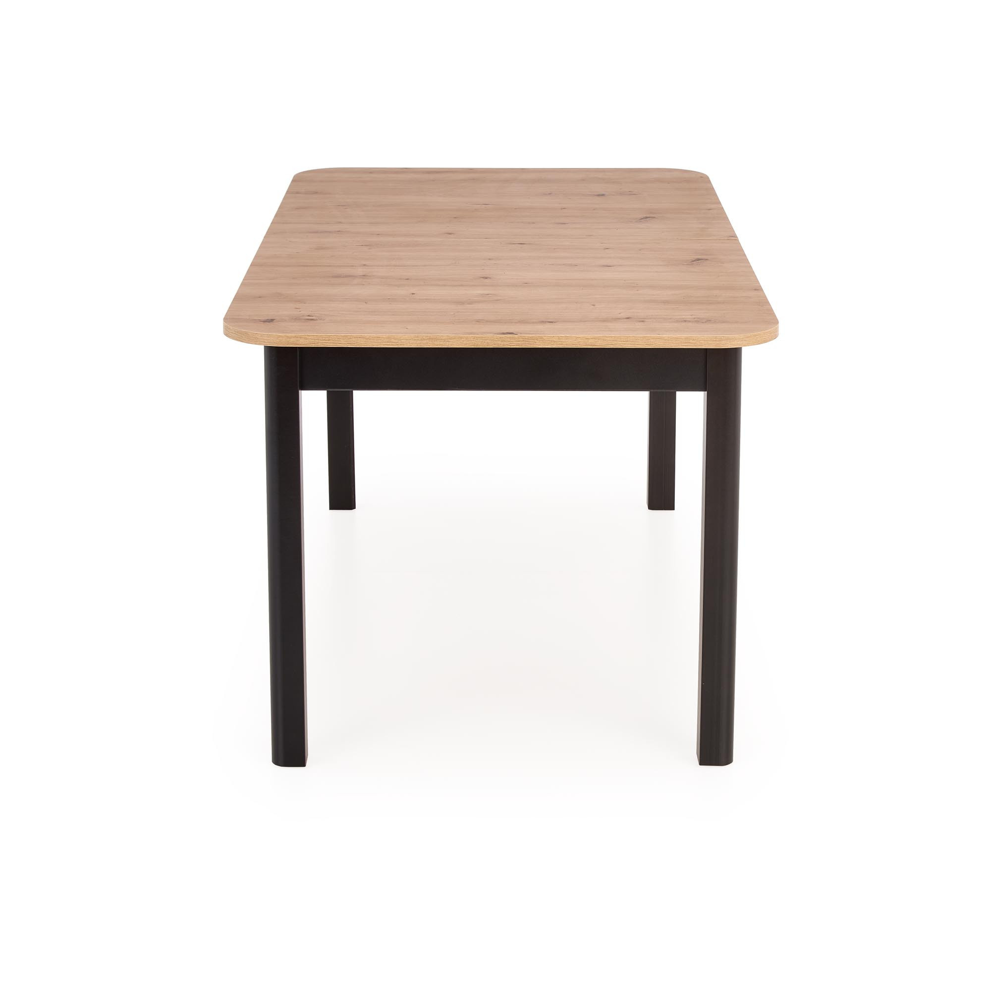rozměry: 141-219/80/78 cm, rozkládací stůl, materiál: dýhovaná nábytková deska / dýhovaná MDF, barva: horní deska - dub artisan, nohy - černé