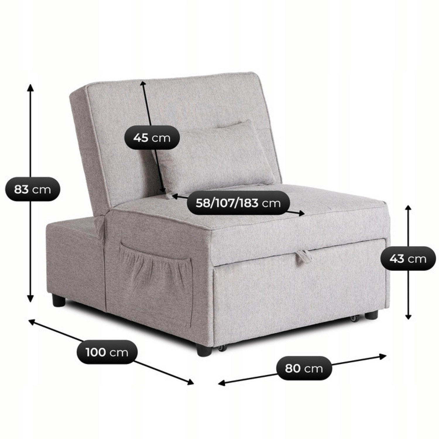 Rozkládací křeslo IBERIS 80 cm na spaní Šedé