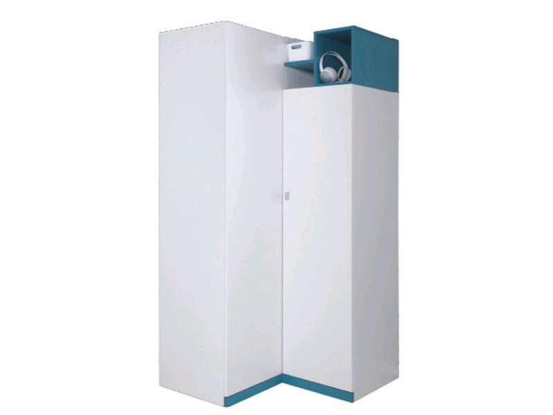 Rohová skříň MOBI MO1, Bílý Lux / Tyrkysový