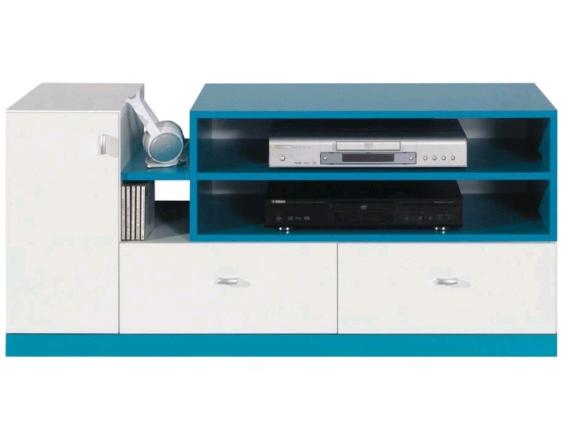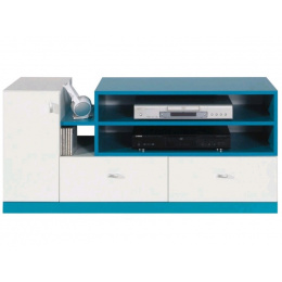 TV komoda MOBI MO12, Bílý Lux / Tyrkysový