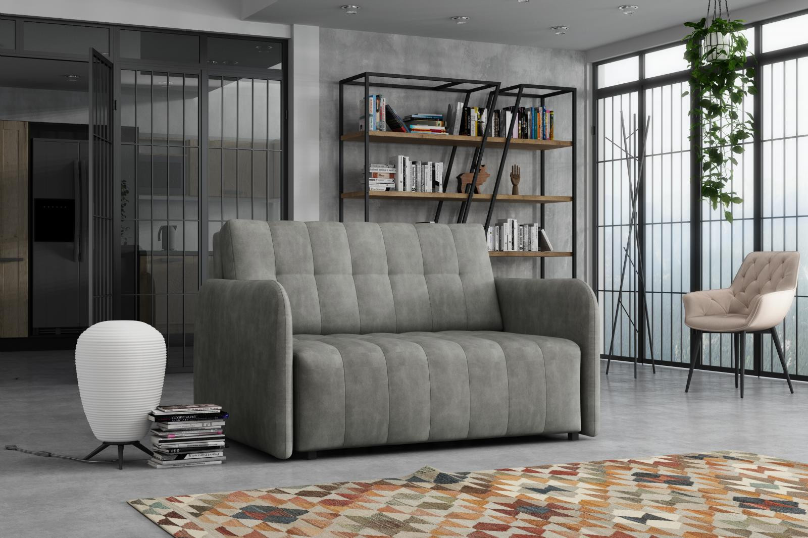 Rozkládací křeslo Vivian je vhodné do dětského, studentského, nebo hostinského pokoje. Jednoduchým rozložením pomocí automatu, získáte lůžko k příležitostnému přespání Vaší návštěvy, nebo kamaráda Vašich dětí. Výplň sedáku tvoří vlnité pružiny v kombinaci s PUR pěnou. Křeslo je potaženo kvalitní látkou s výběrem několika trendy odstínů a velmi elegantním prošíváním. Křeslo disponuje i nepostradatelným úložným prostorem, který využijete např. na deku a polštář. Ostatní vyobrazené doplňky a dekorace nejsou v ceně. Zobrazení barev na fotografii se může od skutečnosti lišit.