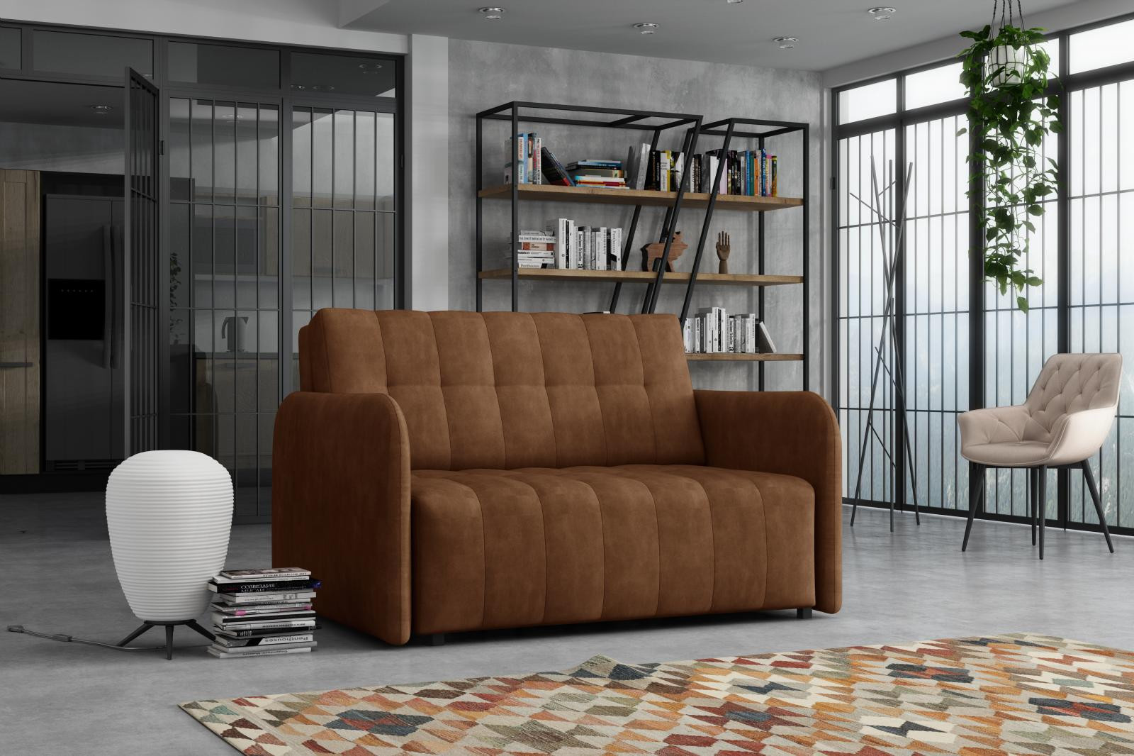 Rozkládací křeslo Vivian je vhodné do dětského, studentského, nebo hostinského pokoje. Jednoduchým rozložením pomocí automatu, získáte lůžko k příležitostnému přespání Vaší návštěvy, nebo kamaráda Vašich dětí. Výplň sedáku tvoří vlnité pružiny v kombinaci s PUR pěnou. Křeslo je potaženo kvalitní látkou s výběrem několika trendy odstínů a velmi elegantním prošíváním. Křeslo disponuje i nepostradatelným úložným prostorem, který využijete např. na deku a polštář. Ostatní vyobrazené doplňky a dekorace nejsou v ceně. Zobrazení barev na fotografii se může od skutečnosti lišit.