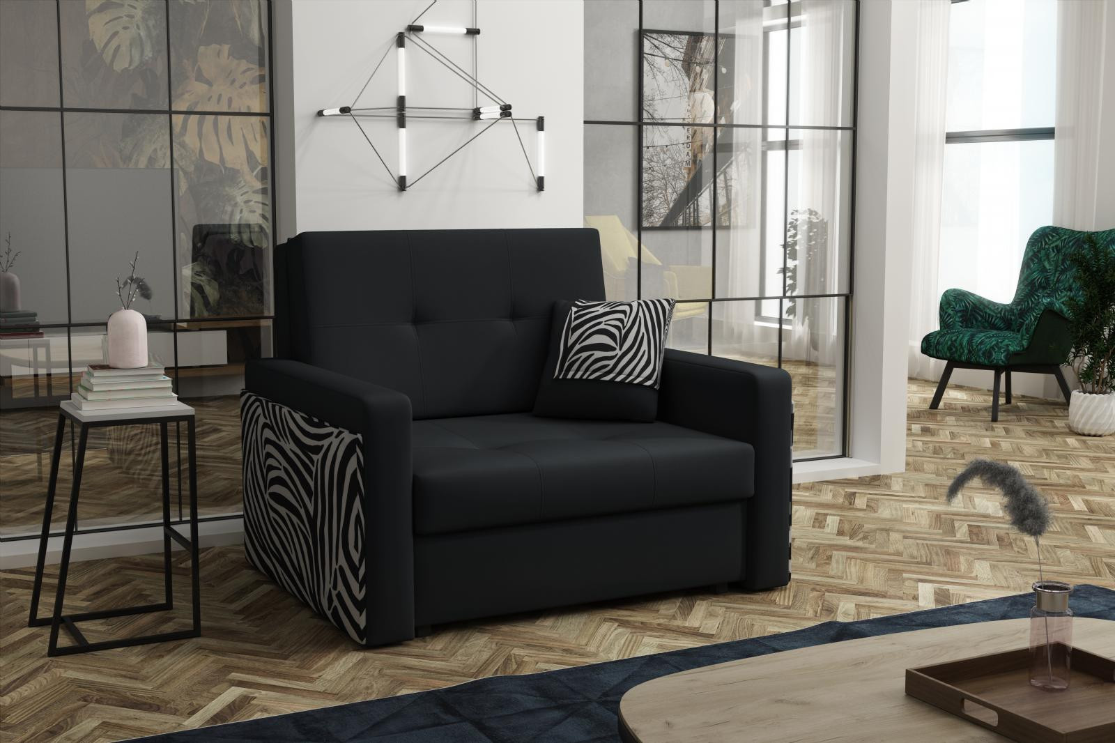 Rozkládací křeslo Vivian Mel I černá/zebra
