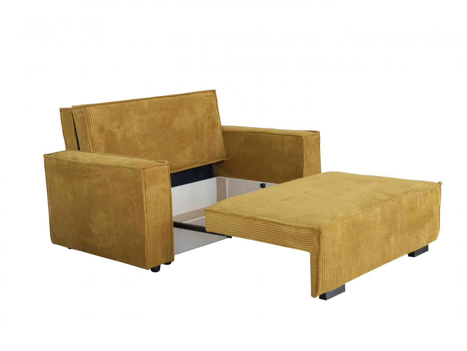 Rozkládací křeslo je vhodné do dětského, studentského, nebo hostinského pokoje. Jednoduchým rozložením pomocí automatu, získáte lůžko k příležitostnému přespání Vaší návštěvy, nebo kamaráda Vašich dětí. Výplň sedáku tvoří vlnité pružiny v kombinaci s PUR pěnou. Křeslo je potaženo kvalitní látkou s výběrem několika trendy odstínů. Křeslo disponuje i nepostradatelným úložným prostorem, který využijete např. na deku a polštář. Ostatní vyobrazené doplňky a dekorace nejsou v ceně. Zobrazení barev na fotografii se může od skutečnosti lišit.