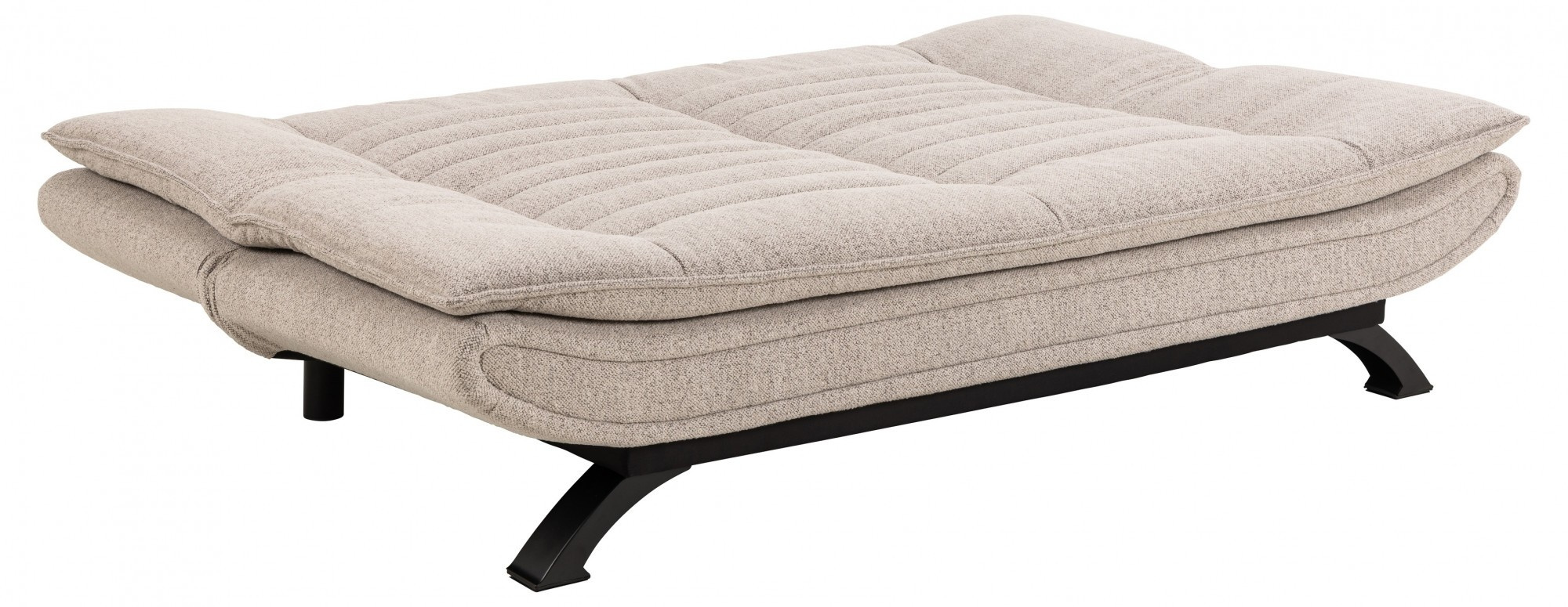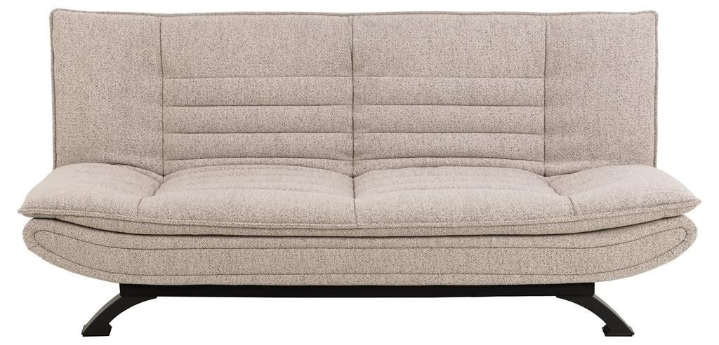 Elegantní rozkládací pohovka je moderní a praktické řešení zejména do studentského bytu a pokoje pro hosty. Vybavená systémem click-clack, rozkládací pohovku lze nastavit do 3 poloh: svislé, ležící a ploché. Čalouněná měkkou tkaninou bouclé s prošíváním, béžová pohovka je příjemná na dotek a způsobuje, že ??pokoj je útulnější. Stojí na pevných černých kovových nohách, které doplňují celek. Rozkládací pohovka Faith, na sedáku, byla potažena látkou Monza fabric béžová 60. Nohy pohovky neobvyklého tvaru jsou kovové a černé. Hmotnost: 42 kg. Rozměry kartonu: 28cm x 199cm x 122cm Plocha na spaní po rozložení: 196x123cm Výška opěradla 50 cm Šířka sedáku 196 cm Hloubka sedáku 59,5 cm Maximální výška sedáku.39 cm
