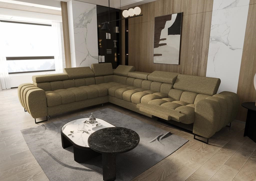 Rohová sedací souprava ASPEN MAX , relax průměr 30x260 cm - Olivová , levá
