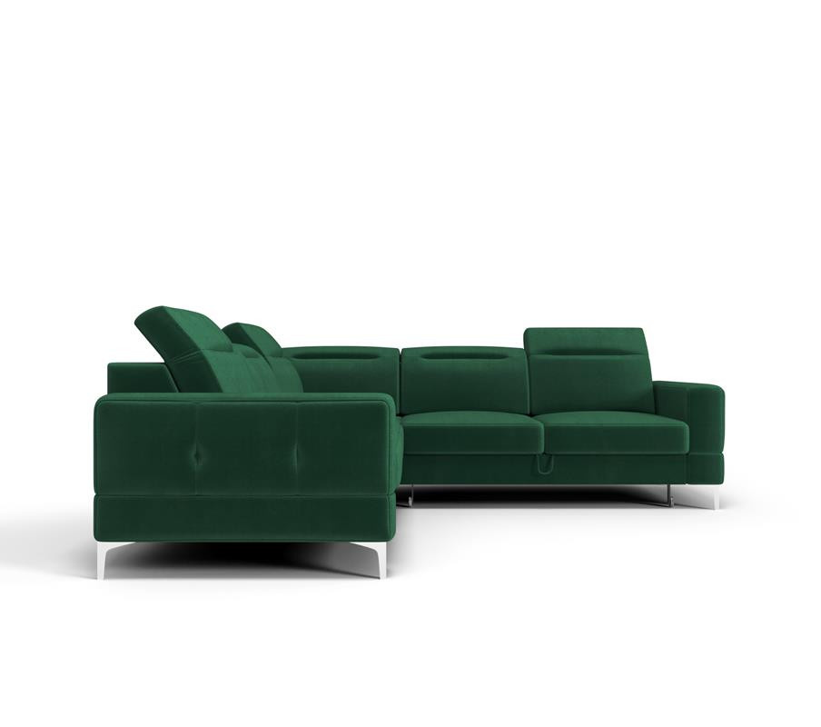 Rohová sedačka má nastavitelné, vícestupňové opěrky hlavy, chromované ozdobné nožky, sedáky s ozdobným prošíváním, které jsou vyrobeny na vlnitých pružinách a vysoce elastické pěně, což zajišťuje vysoký komfort používání a zabraňuje deformaci nejčastěji používaných ploch. Stranu rohové sedačky určuje úložný prostor na lůžkoviny. Kontejner vpravo - pravá strana, kontejner vlevo - levá strana (stojíc čelem k nábytku).