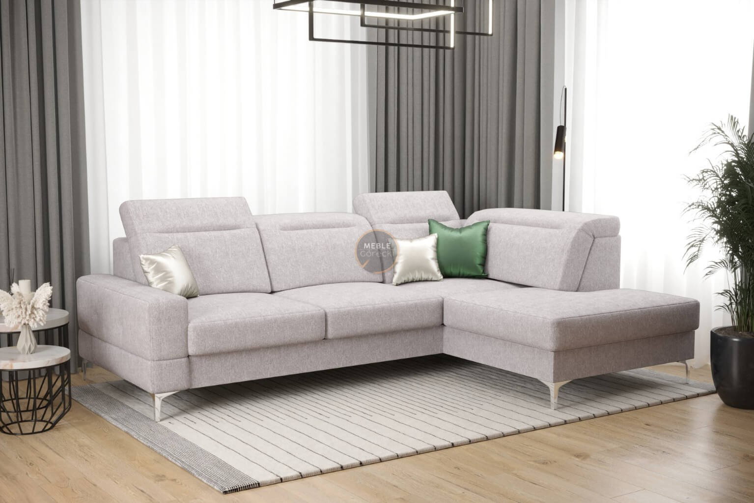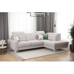 Rohová sedačka má nastavitelné, vícestupňové opěrky hlavy, chromované ozdobné nožky, sedáky s ozdobným prošíváním, které jsou vyrobeny na vlnitých pružinách a vysoce elastické pěně, což zajišťuje vysoký komfort používání a zabraňuje deformaci nejčastěji používaných ploch.