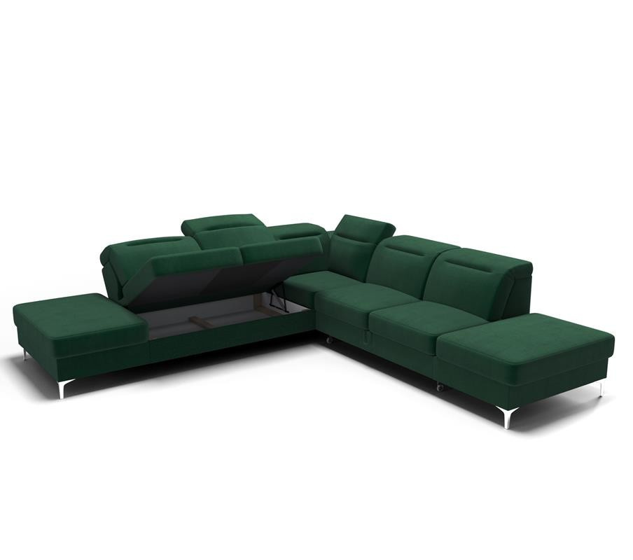 Rohová sedačka má nastavitelné, vícestupňové opěrky hlavy, chromované ozdobné nožky, sedáky s ozdobným prošíváním, které jsou vyrobeny na vlnitých pružinách a vysoce elastické pěně, což zajišťuje vysoký komfort používání a zabraňuje deformaci nejčastěji používaných ploch. Stranu rohové sedačky určuje úložný prostor na lůžkoviny. Kontejner vpravo - pravá strana, kontejner vlevo - levá strana (stojíc čelem k nábytku).
