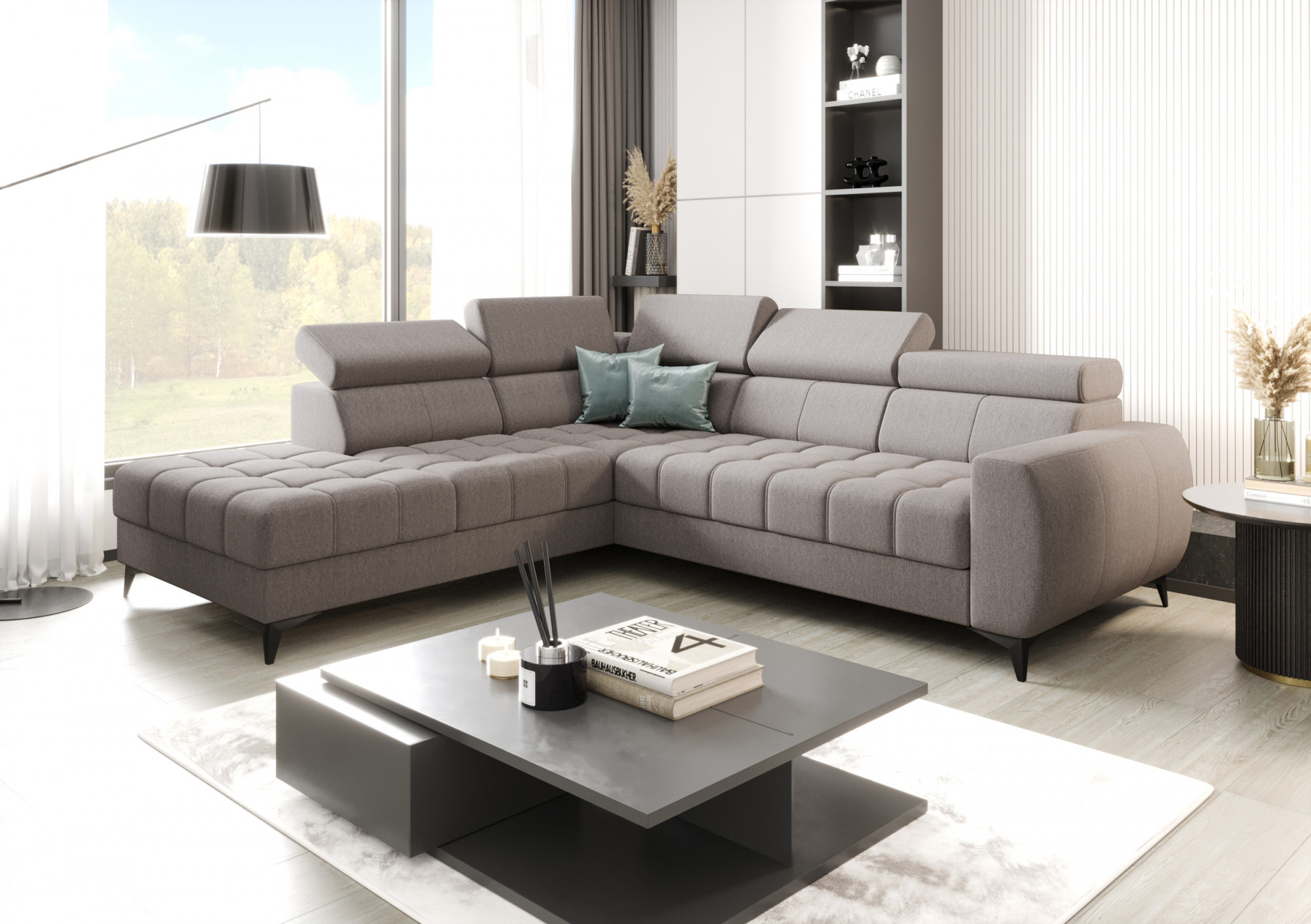 Rohová sedací souprava PORTO 225X255 cm - pravá, odstíny šedomodré