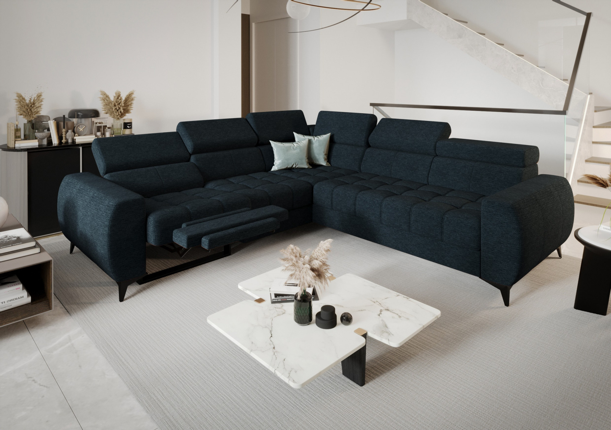 Rohová sedací souprava PORTO II , relax 255X258 cm - modrá , levá