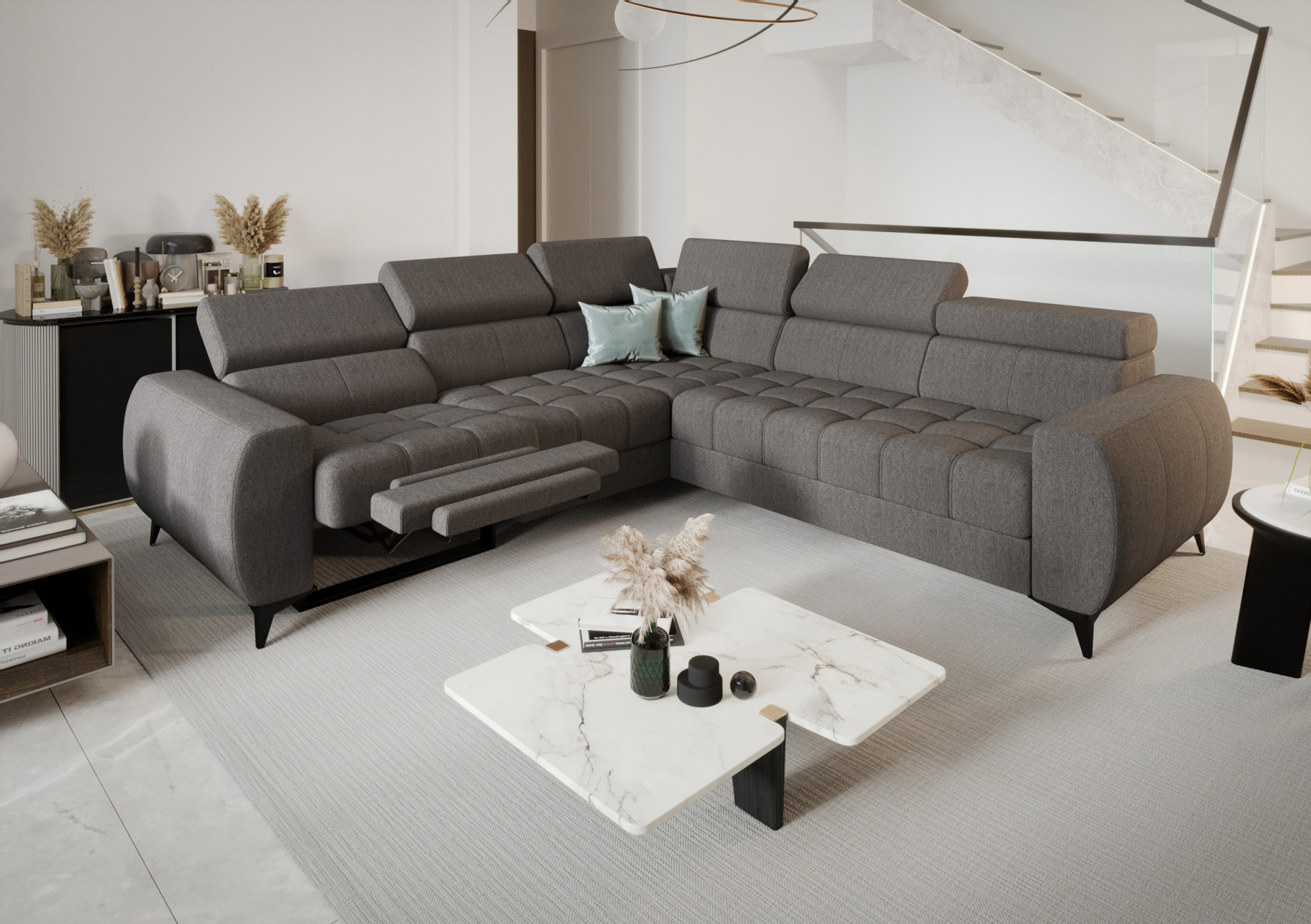 Rohová sedací souprava PORTO II , relax 255X258 cm - šedá , levá