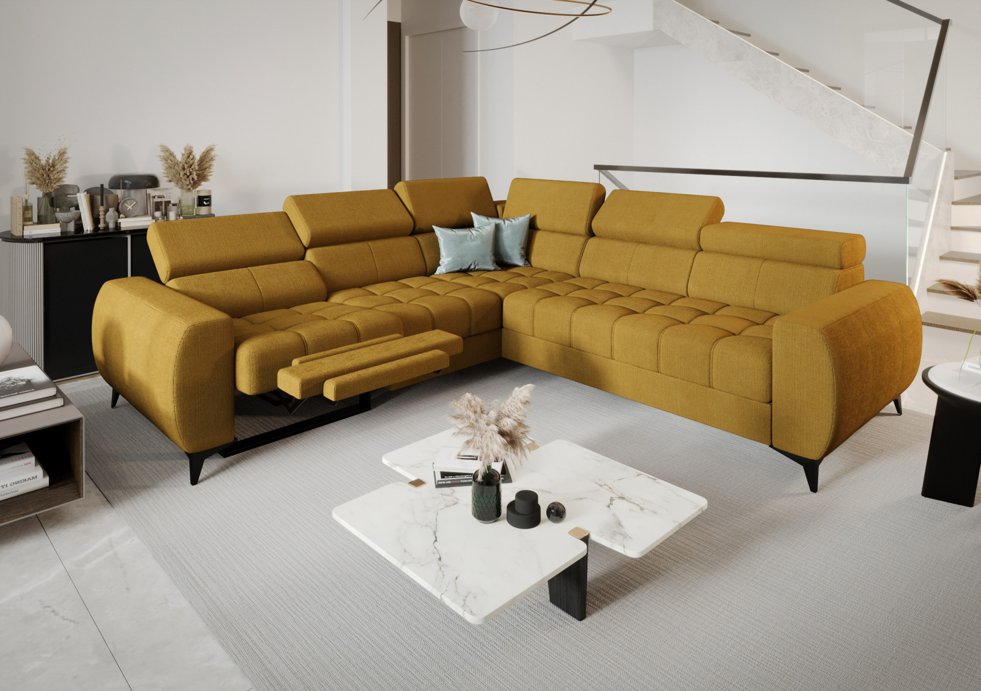 Rohová sedací souprava PORTO II , relax 255X258 cm - žlutá , levá