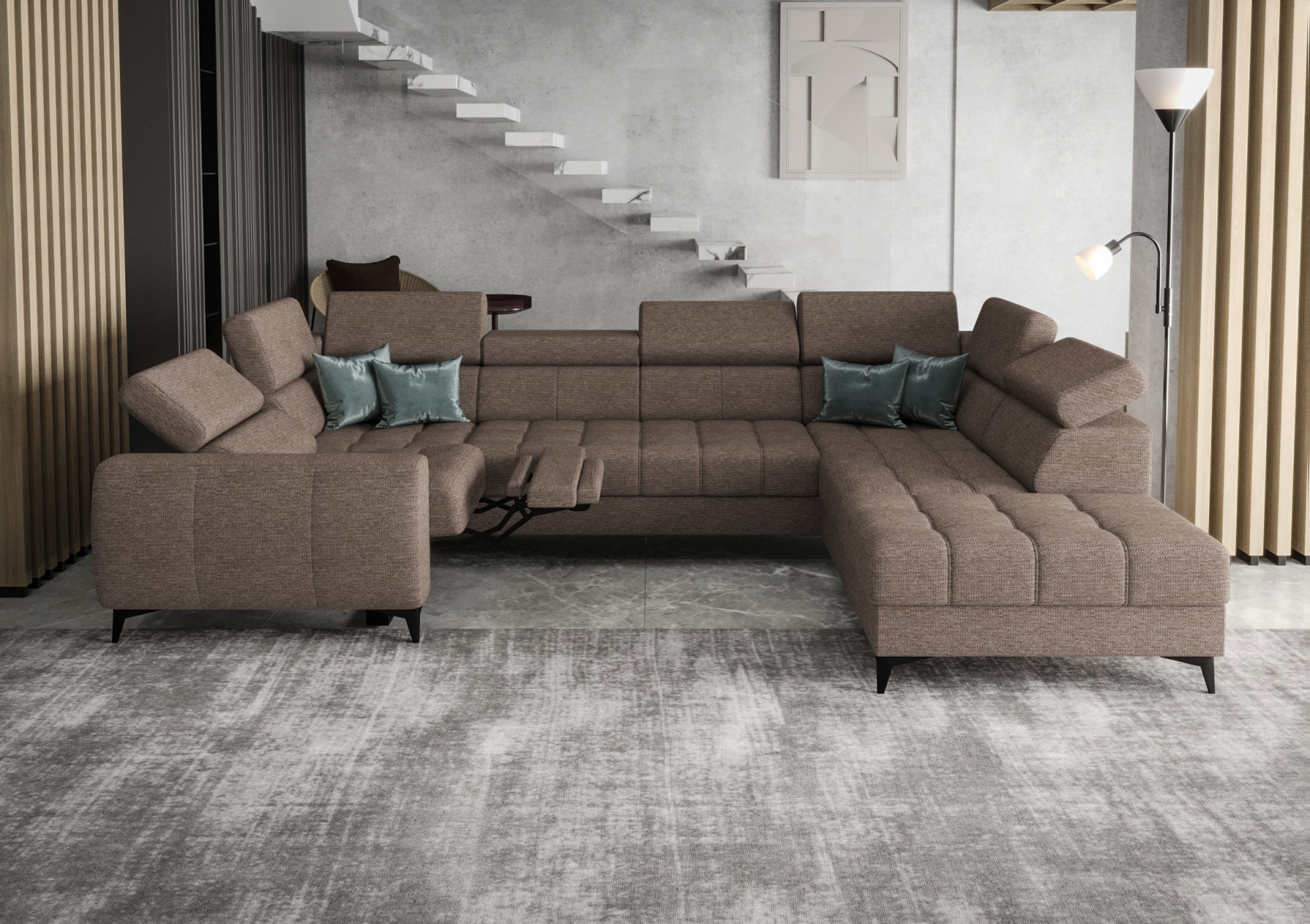 Rohová sedací souprava PORTO MAX I , relax 225X350X193 cm - pravá, odstíny tmavé béžové