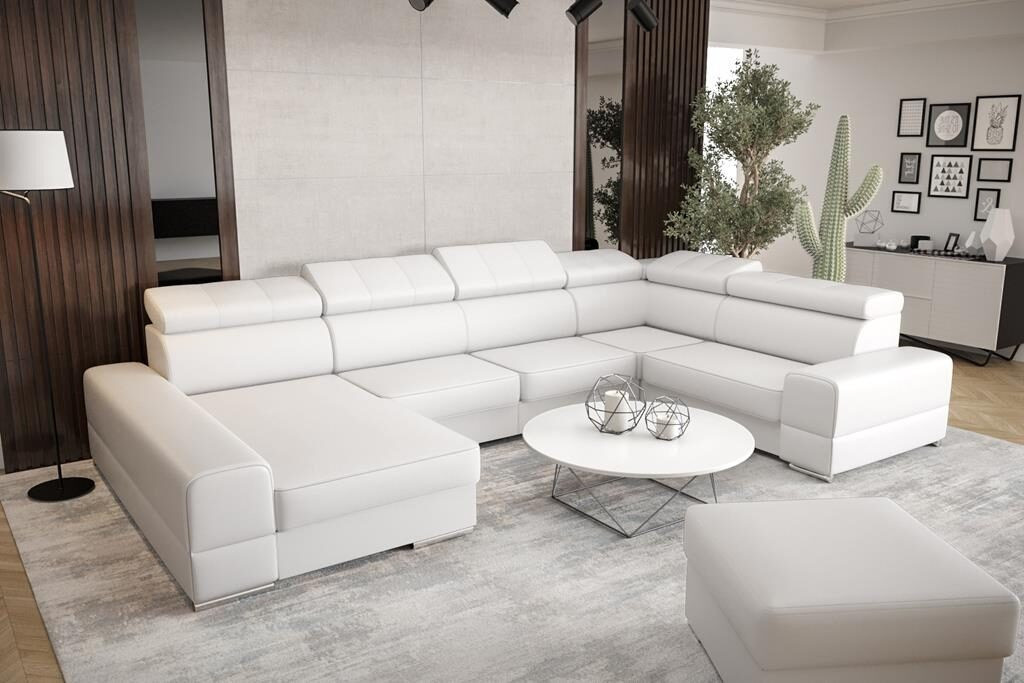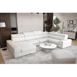 Rohová sedací souprava ROYAL MAX II průměr 230x375x185 - bílá eko kůže , pravá