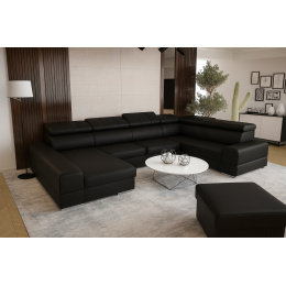 Rohová sedací souprava ROYAL MAX II průměr 230x375x185 - černá eko kůže , pravá