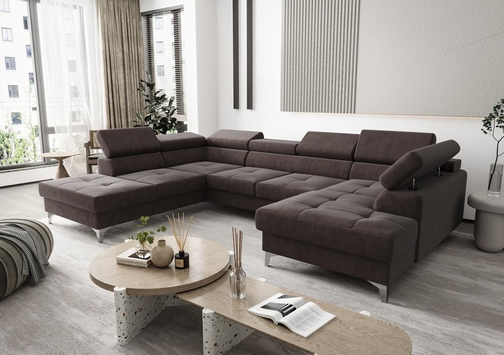Rozkládací rohová sedačka Toscania je jen jedním z mnoha našich žhavých návrhů. Rohová sedačka na vysokých nožkách s prošívanými sedáky a nastavitelnými opěrkami hlavy se dokonale hodí jak do moderních, tak i klasických interiérů. Seznamte se s rozsáhlou nabídkou. Nejsi si jistý, která tkanina bude nejvhodnější? Kontaktujte našeho konzultanta a obdržíte zdarma vzorky materiálu.