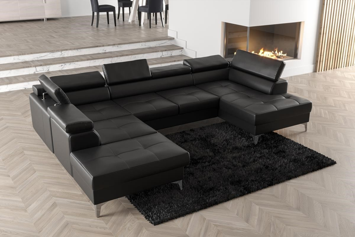 Rohová sedací souprava TOSCANIA MAX II 170x350x220 - černá eko kůže , levá