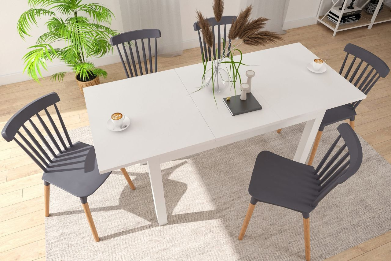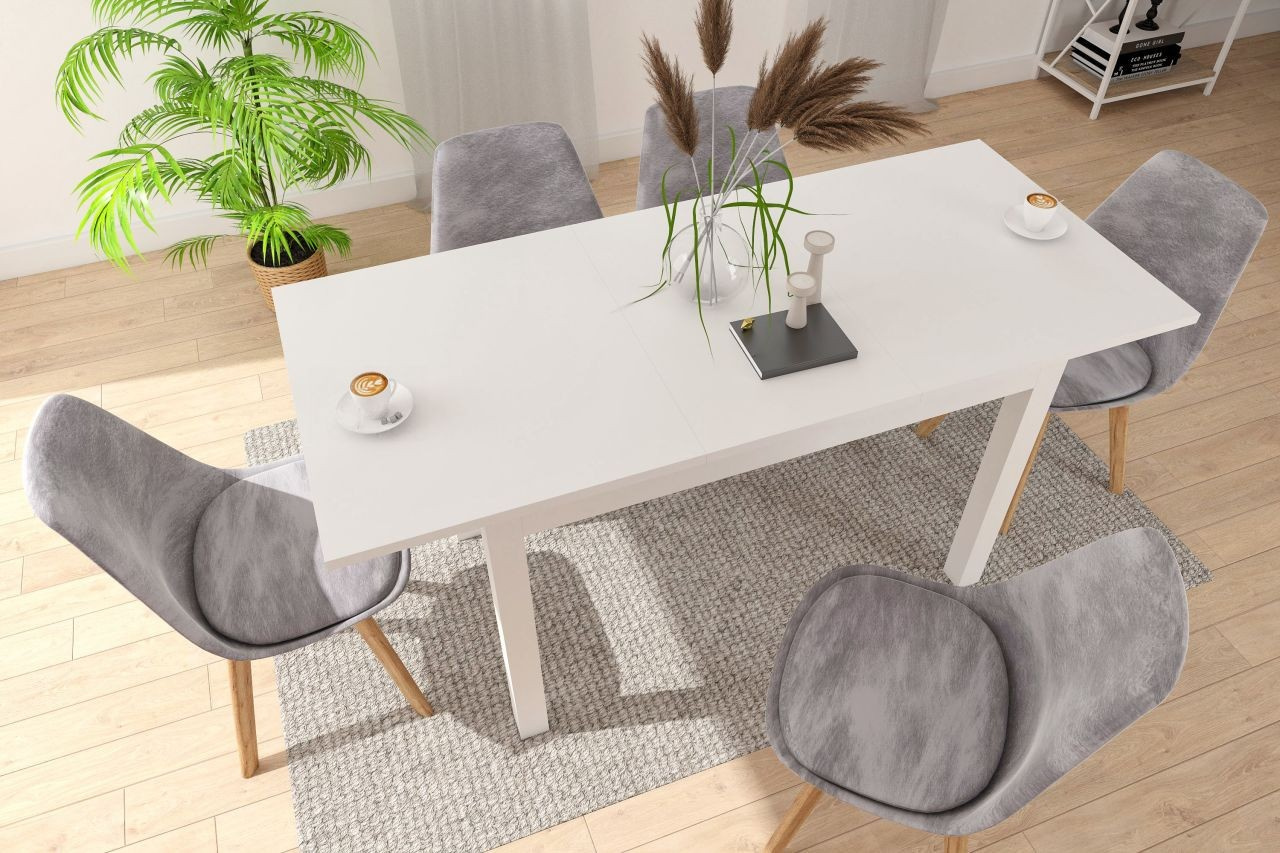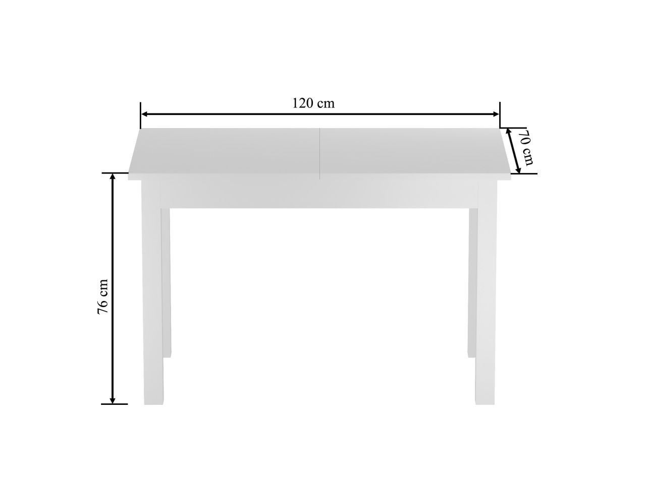 Rozměry: - délka: 120 cm (po rozložení 160 cm) - šířka: 70 cm - výška: 76 cm - tloušťka desky: 2,2 cm Materiál: - deska + základna: laminovaná deska, hrany ABS Barva: - bílá