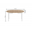 Rozměry: - délka: 100 cm (po rozložení 140 cm) - šířka: 100 cm - výška: 75 cm - tloušťka desky: 1,8 cm - vložka: 100x40 cm Materiál: - deska + základna: laminovaná deska, hrany ABS - nohy: MDF Barva: - zlatý dub craft + bílá