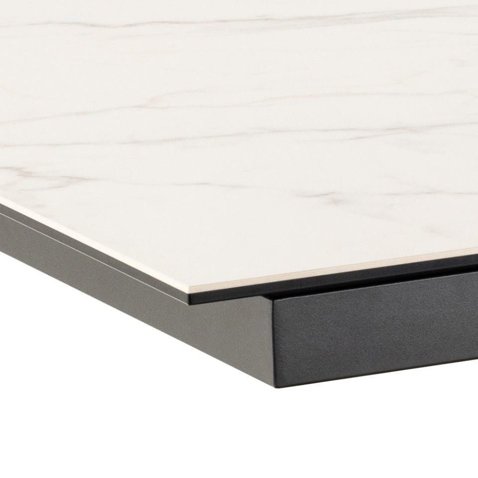 Protože praktičnost a design jsou často stejně důležité, pokud jde o jídelní stoly, tento stůl se skrytými přídavnými deskami byl vytvořen nejen proto, aby sloužil svému účelu, ale také aby potěšil oko svým estetickým provedením. Navržen s bílou mramorovou keramickou deskou, je elegantní, odolný vůči teplu a poškrábání. Když máte hosty, stačí jemně zatáhnout za konec stolu, aby se dodatečná prodlužovací deska vysunula uprostřed stolu. Šedá keramická deska odolná vůči vysoké teplotě a poškrábání. Synchronně vysouvatelná deska z odpovídající keramiky. Skládací přídavná deska, když není používána. Ocelová křížová základna lakovaná práškovou barvou na černo. Pohodlné místo pro 8 osob při složeném a 10 osob při rozloženém stole. Vyžaduje montáž Karton: 208x108x12,5cm, hmotnost: 96kg a 70x108x7,8cm a 17 kg