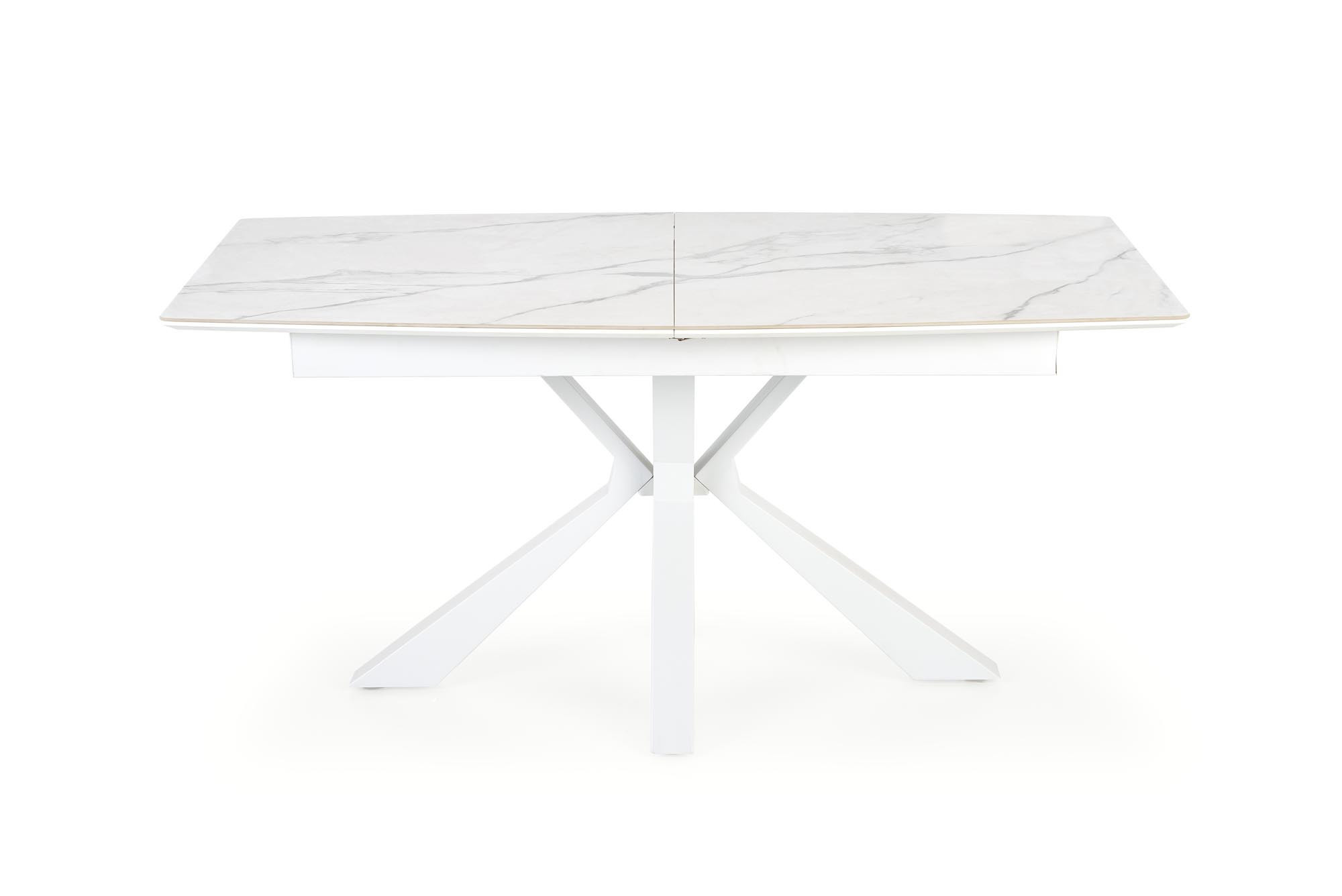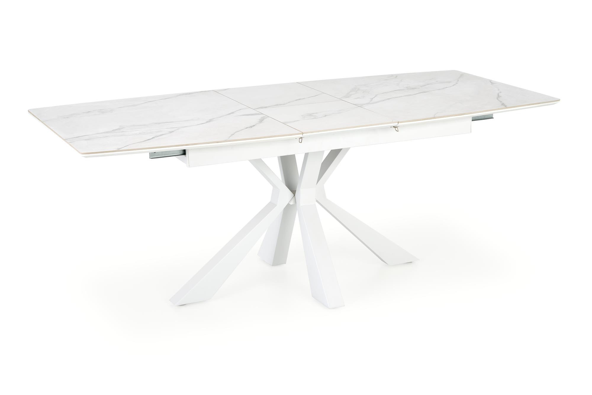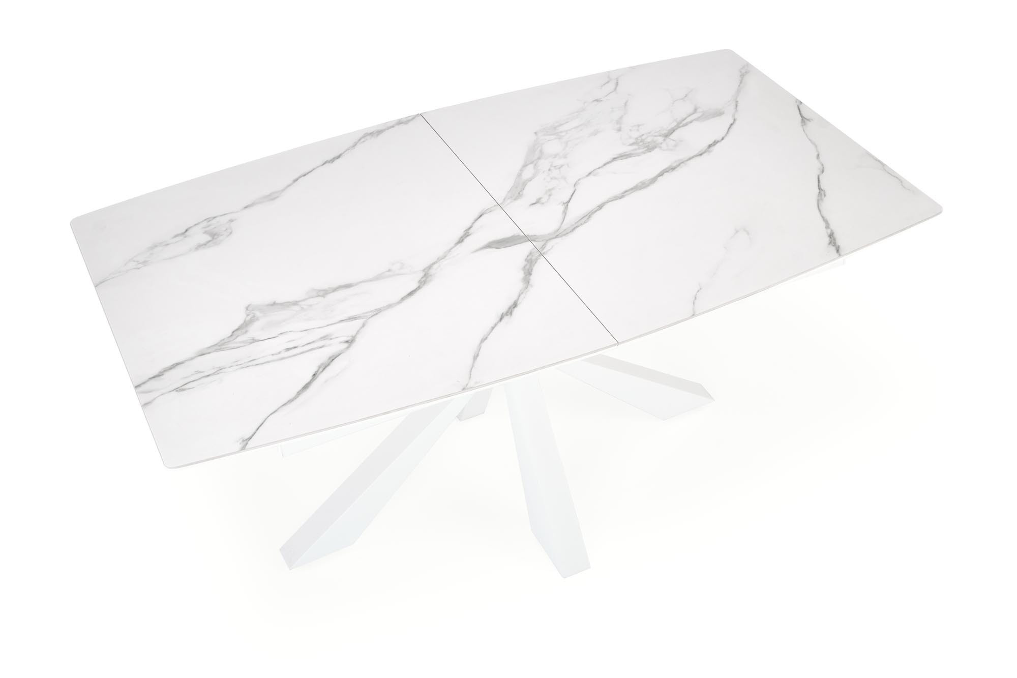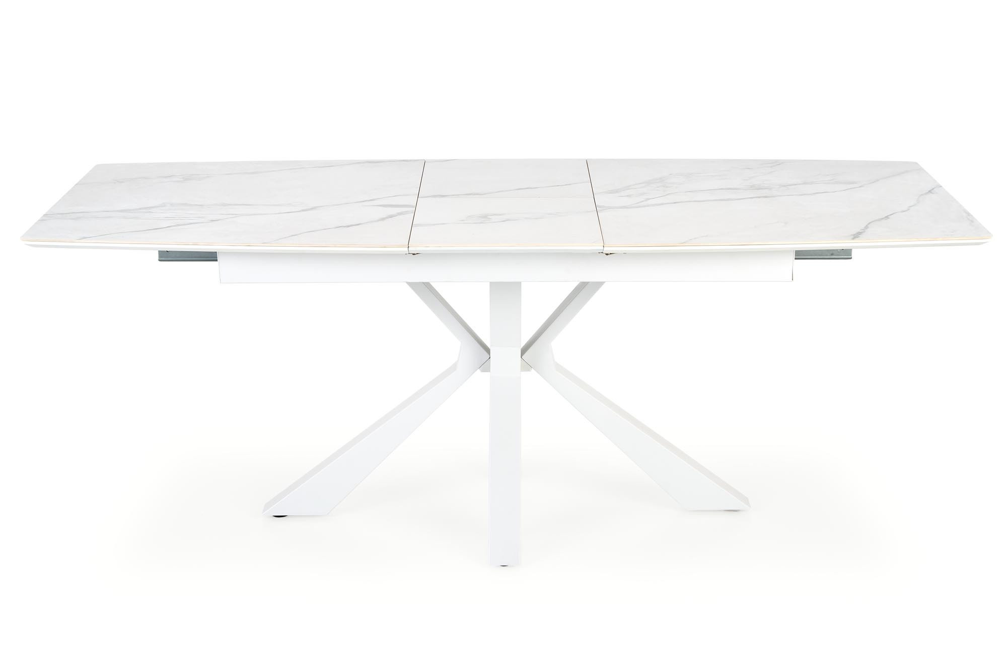 rozměry: 160-200/89/78 cm, materiál: slinutá / lakovaná MDF / práškově lakovaná ocel, barva: deska stolu - bílý mramor, nohy - bílá