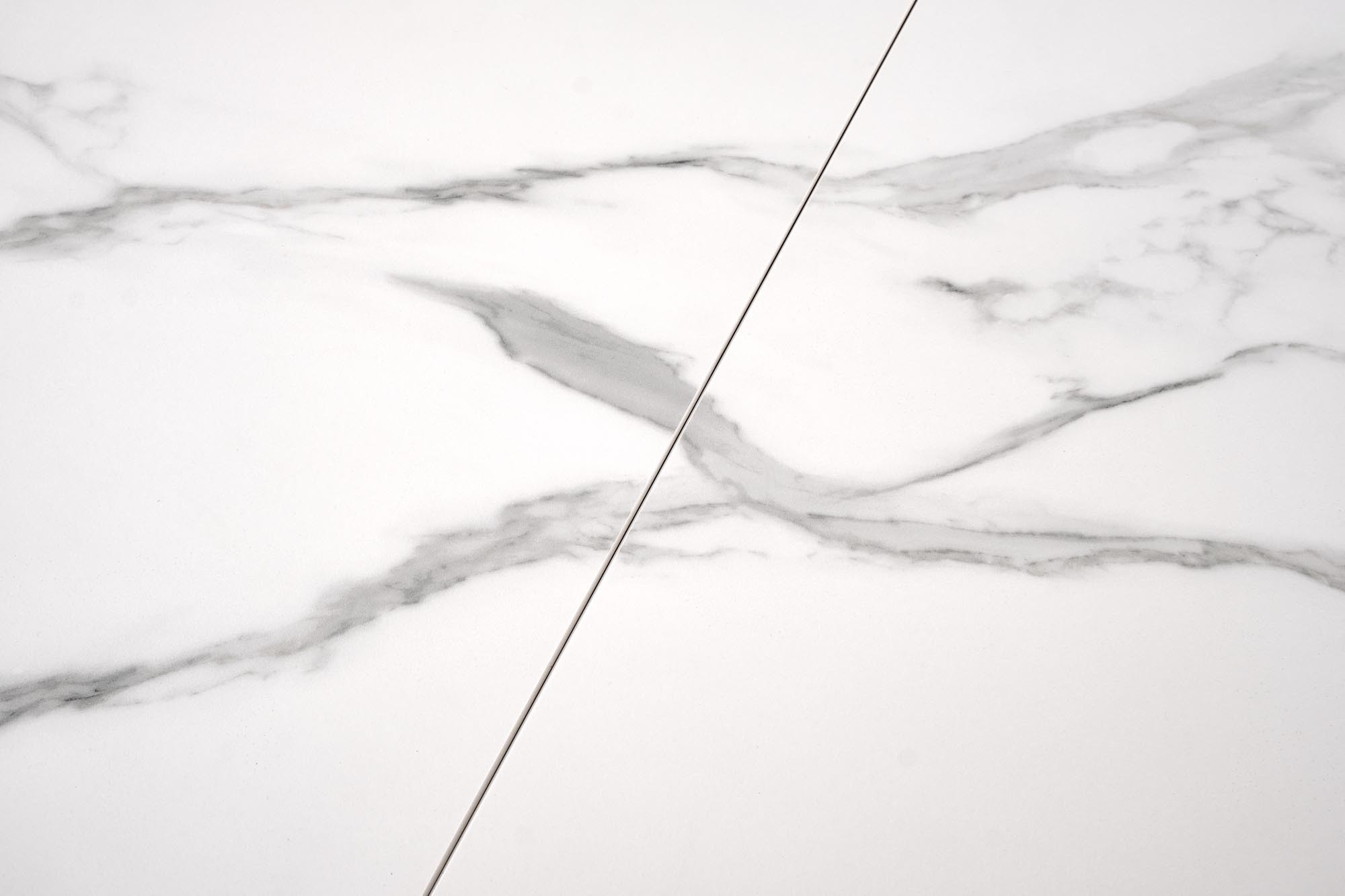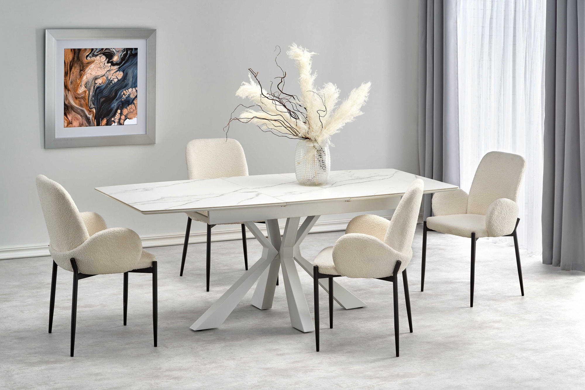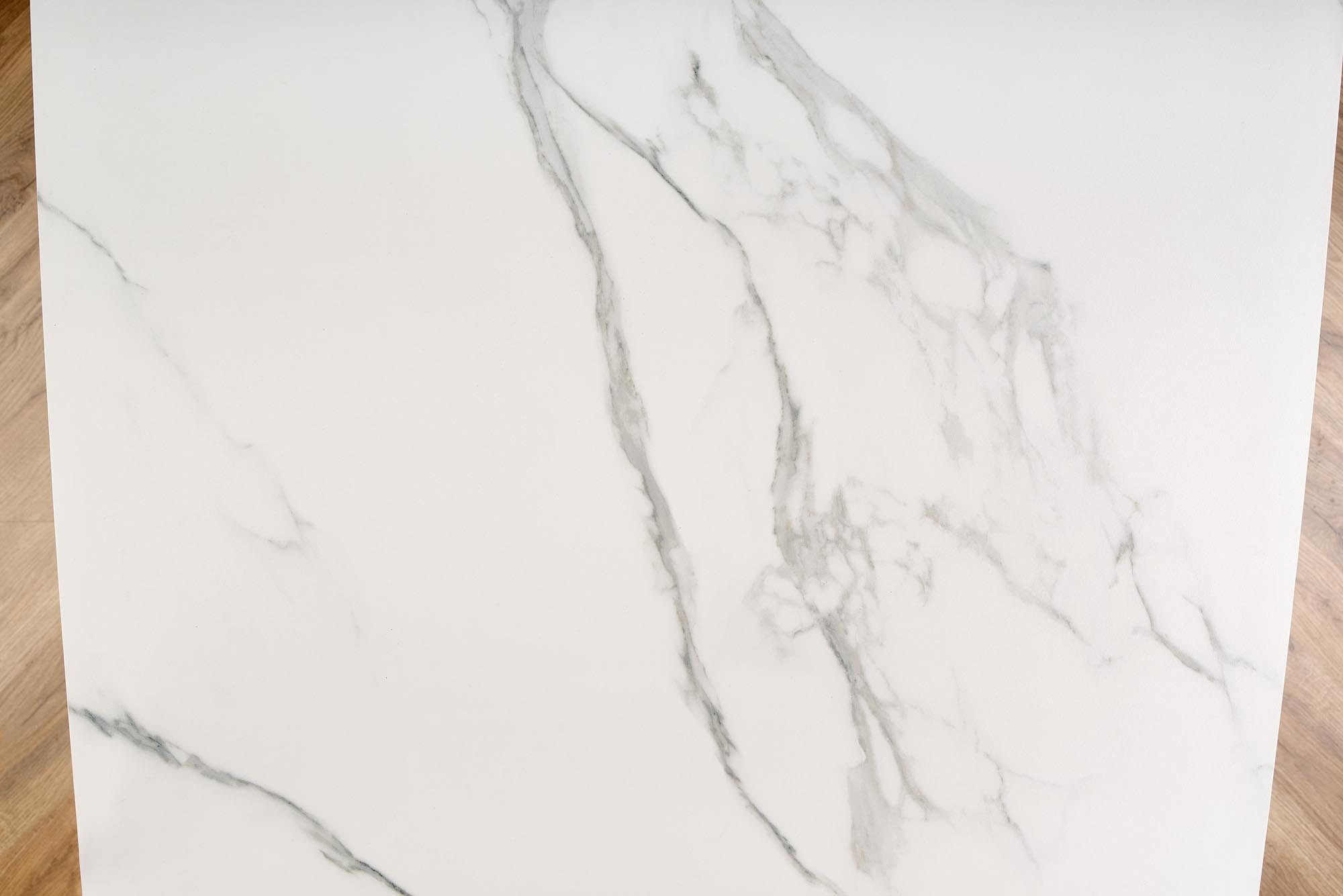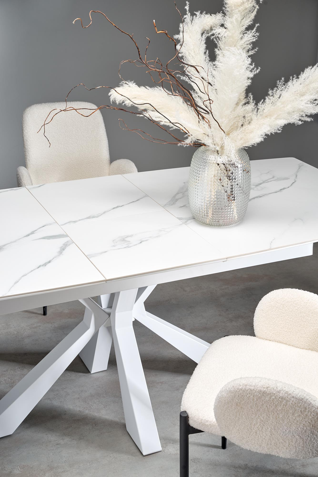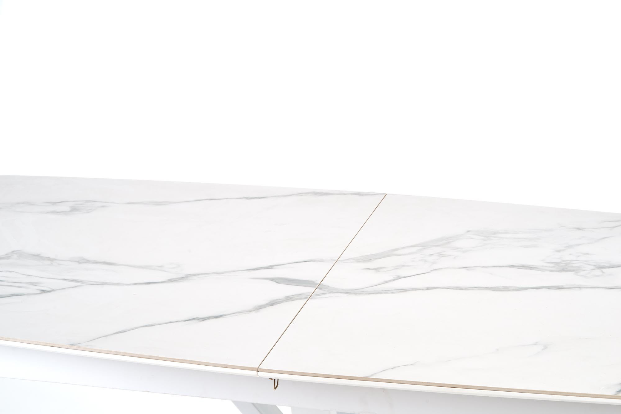 rozměry: 160-200/89/78 cm, materiál: slinutá / lakovaná MDF / práškově lakovaná ocel, barva: deska stolu - bílý mramor, nohy - bílá