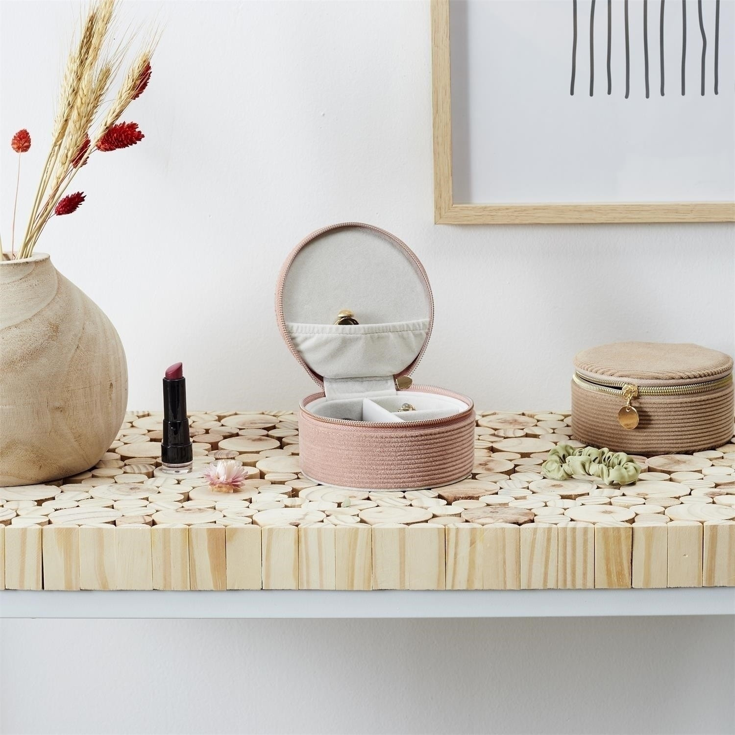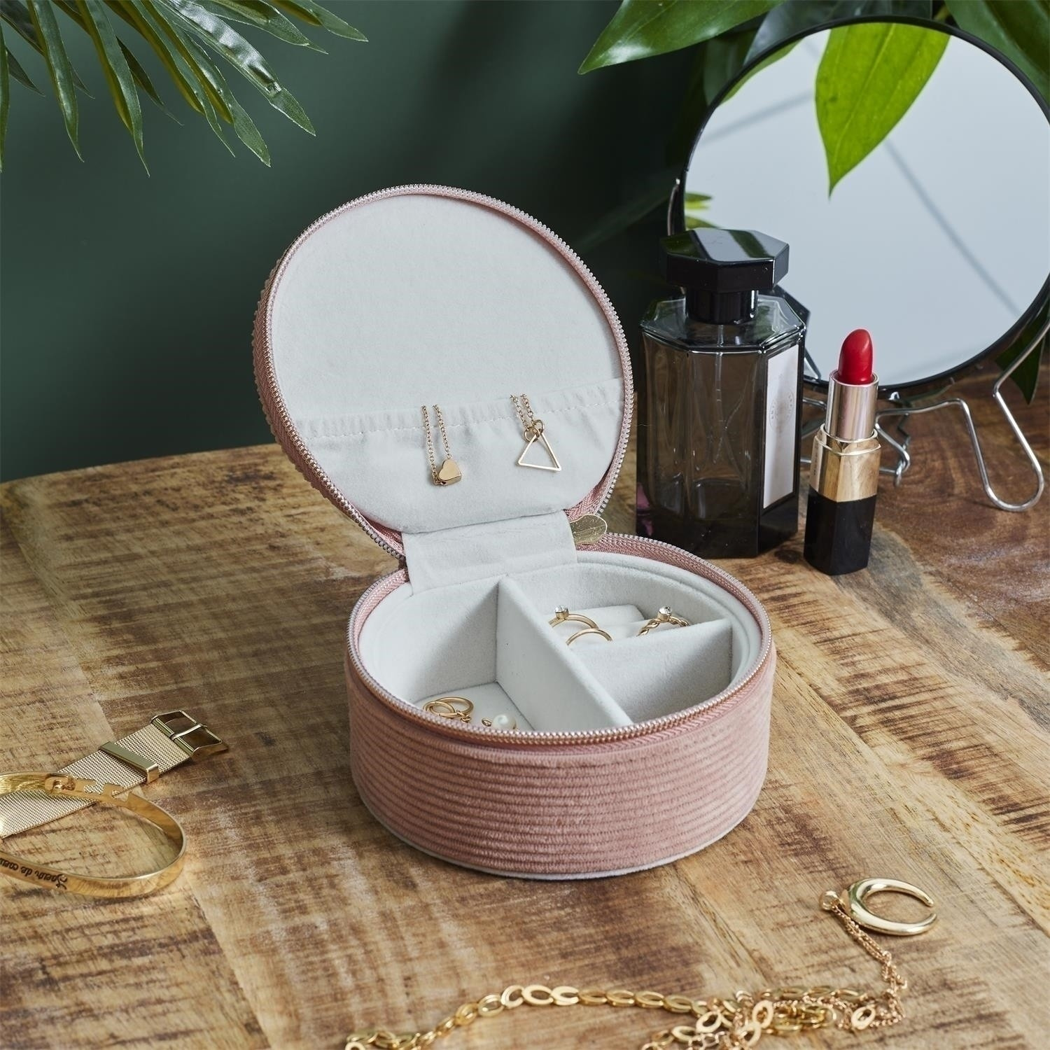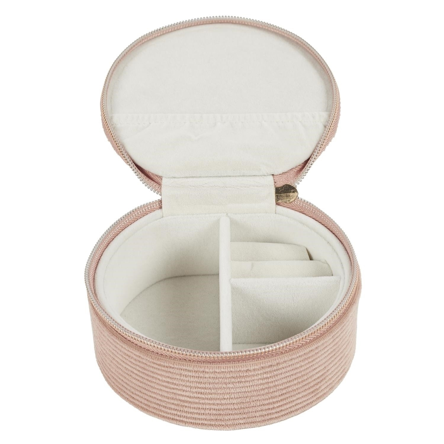 Manšestrová šperkovnice na zip je ideální organizér na šperky. Šperkovnice je vybavena přihrádkami na prsteny, náramky a náušnice. Šperkovnice má na vnitřní straně víka namontovanou kapsičku na větší náramky nebo náhrdelníky. Dostupná ve 3 barvách.