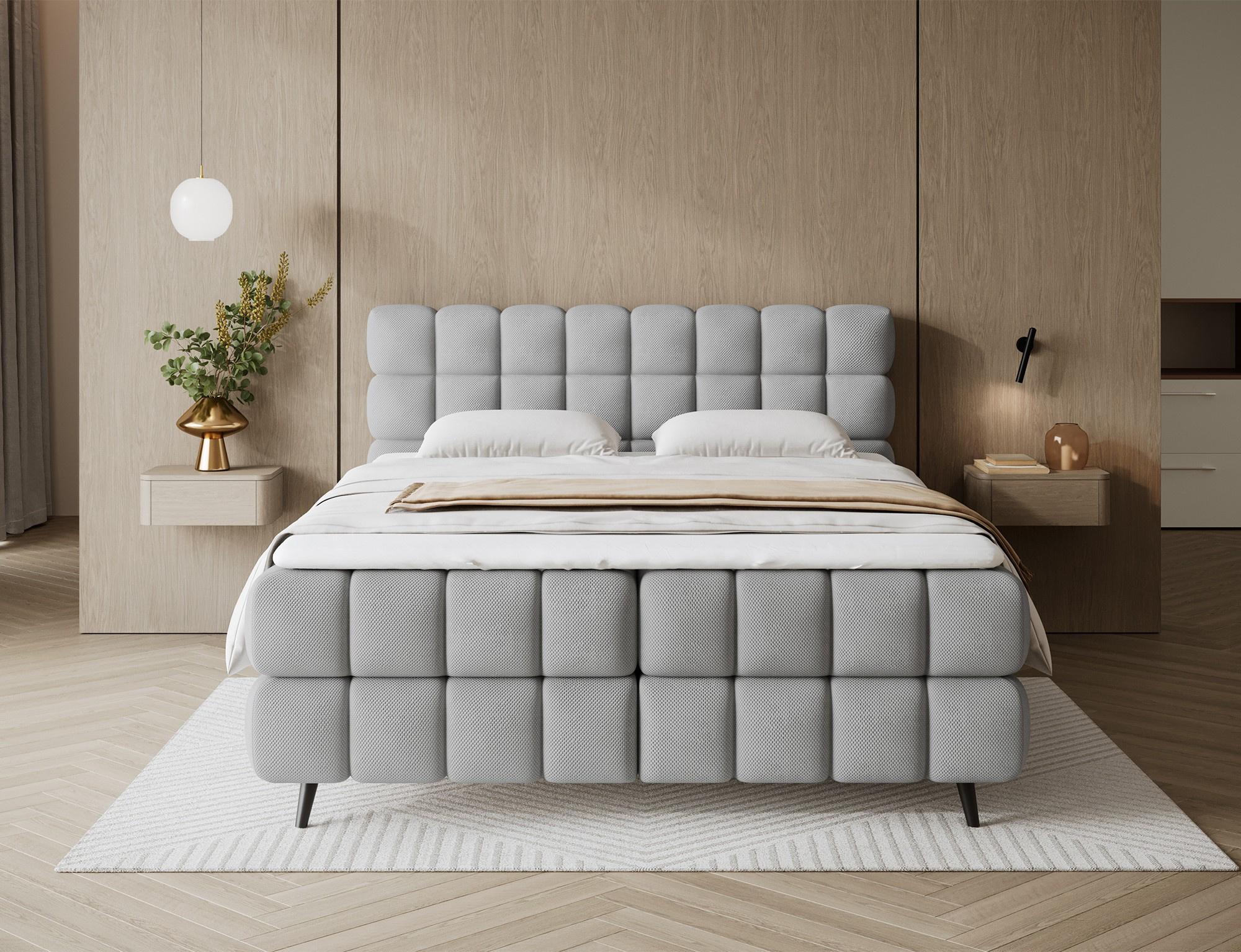 Spací plocha je ideální pro jednotlivce i páry, kteří si chtějí užít dostatek prostoru pro pohodlný spánek. Součástí postele je kvalitní matrace vyrobená z bonelů a polyuretanové pěny T2540, která poskytuje optimální podporu těla během spánku. Navíc je v ceně zahrnuta i vrchní matrace - topper, která zvyšuje komfort a prodlužuje životnost hlavní matrace.