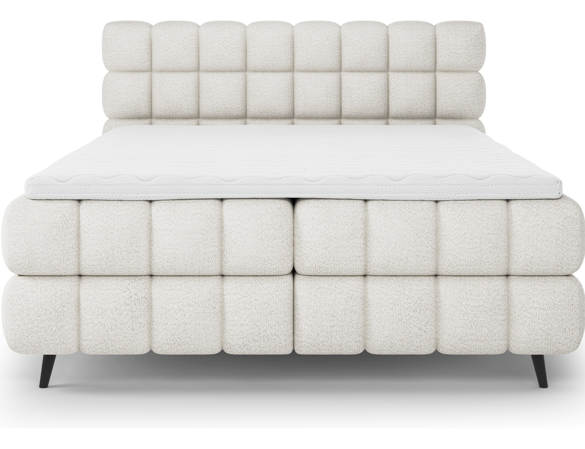 Spací plocha je ideální pro jednotlivce i páry, kteří si chtějí užít dostatek prostoru pro pohodlný spánek. Součástí postele je kvalitní matrace vyrobená z bonelů a polyuretanové pěny T2540, která poskytuje optimální podporu těla během spánku. Navíc je v ceně zahrnuta i vrchní matrace - topper, která zvyšuje komfort a prodlužuje životnost hlavní matrace.