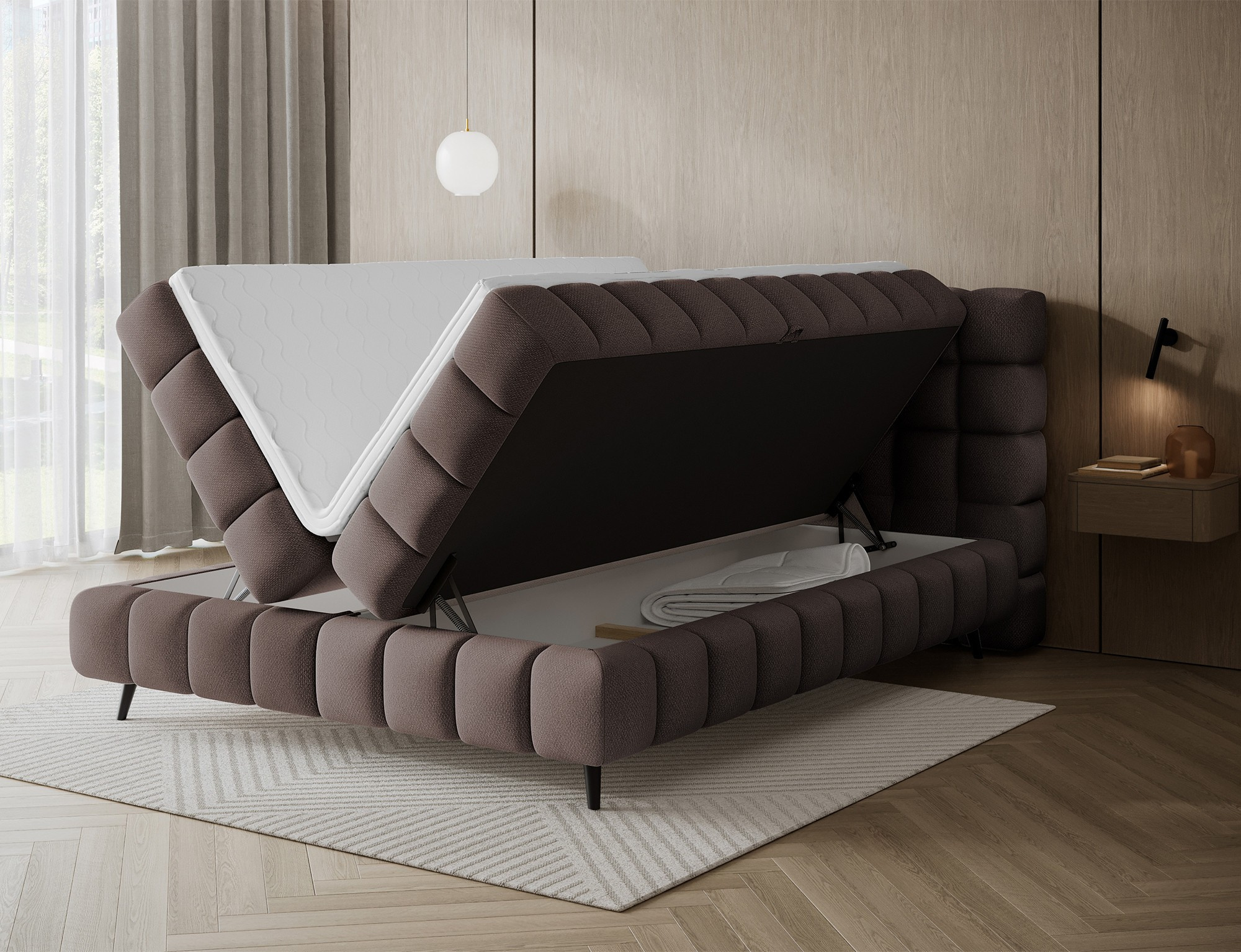 Spací plocha je ideální pro jednotlivce i páry, kteří si chtějí užít dostatek prostoru pro pohodlný spánek. Součástí postele je kvalitní matrace vyrobená z bonelů a polyuretanové pěny T2540, která poskytuje optimální podporu těla během spánku. Navíc je v ceně zahrnuta i vrchní matrace - topper, která zvyšuje komfort a prodlužuje životnost hlavní matrace.