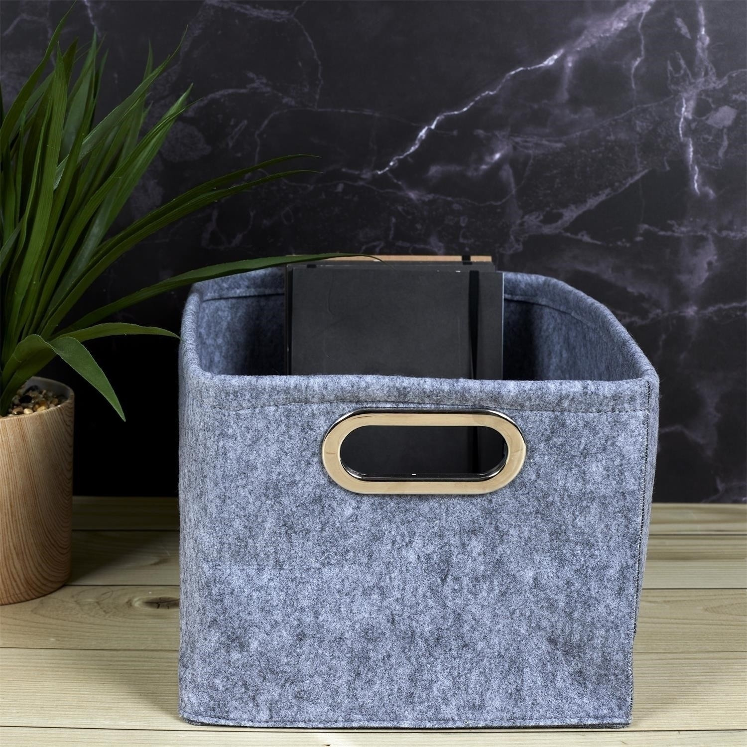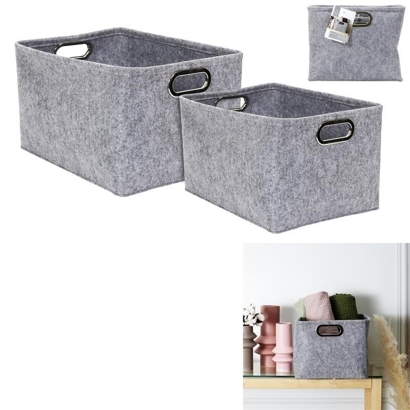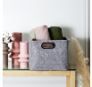 Sada 2 plstěných krabic se hodí nejen k ukládání drobných předmětů, ale také dek, přehozů nebo plyšáků. Rozměry krabic: větší: 40x30x24,8 cm, menší: 35x25x20 cm